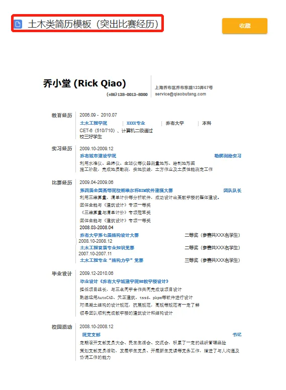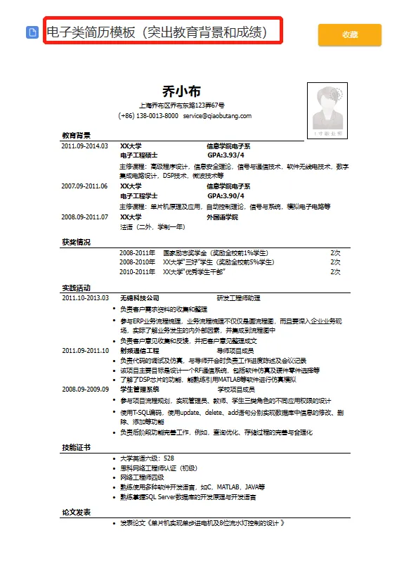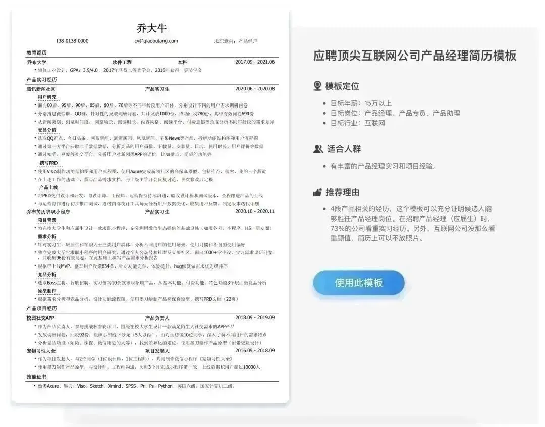 如果你经历不丰富,参考那些经历丰富的人的简历,永远不知道该怎么写。如果你有丰富的实习实践经历,却选了一份漂亮却内容单薄的简历模板,你的光彩就被埋没了!