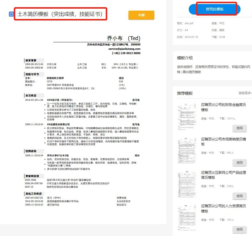 好的简历模板,能帮助你有效展示你的核心竞争力!