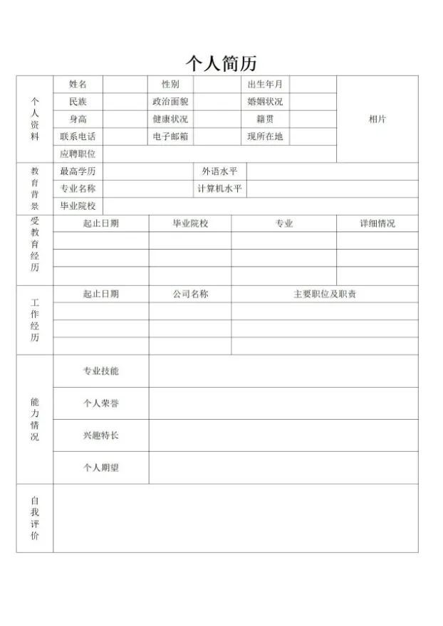 2026最新个人简历模板电子版可填写(Word/PDF格式)- 零基础即拿即用