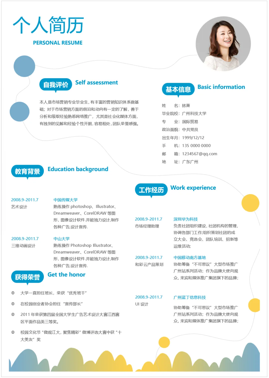 优秀大学生个人简历模板,WORD文档电子版,可免费下载打印