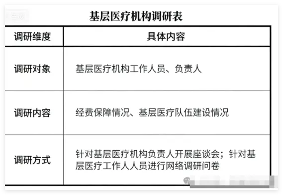 2. 关联对象补充:增加社区/村社干部和医保经办人员,从基层治理和医保结算角度,获取医疗服务配套环节的反馈。
