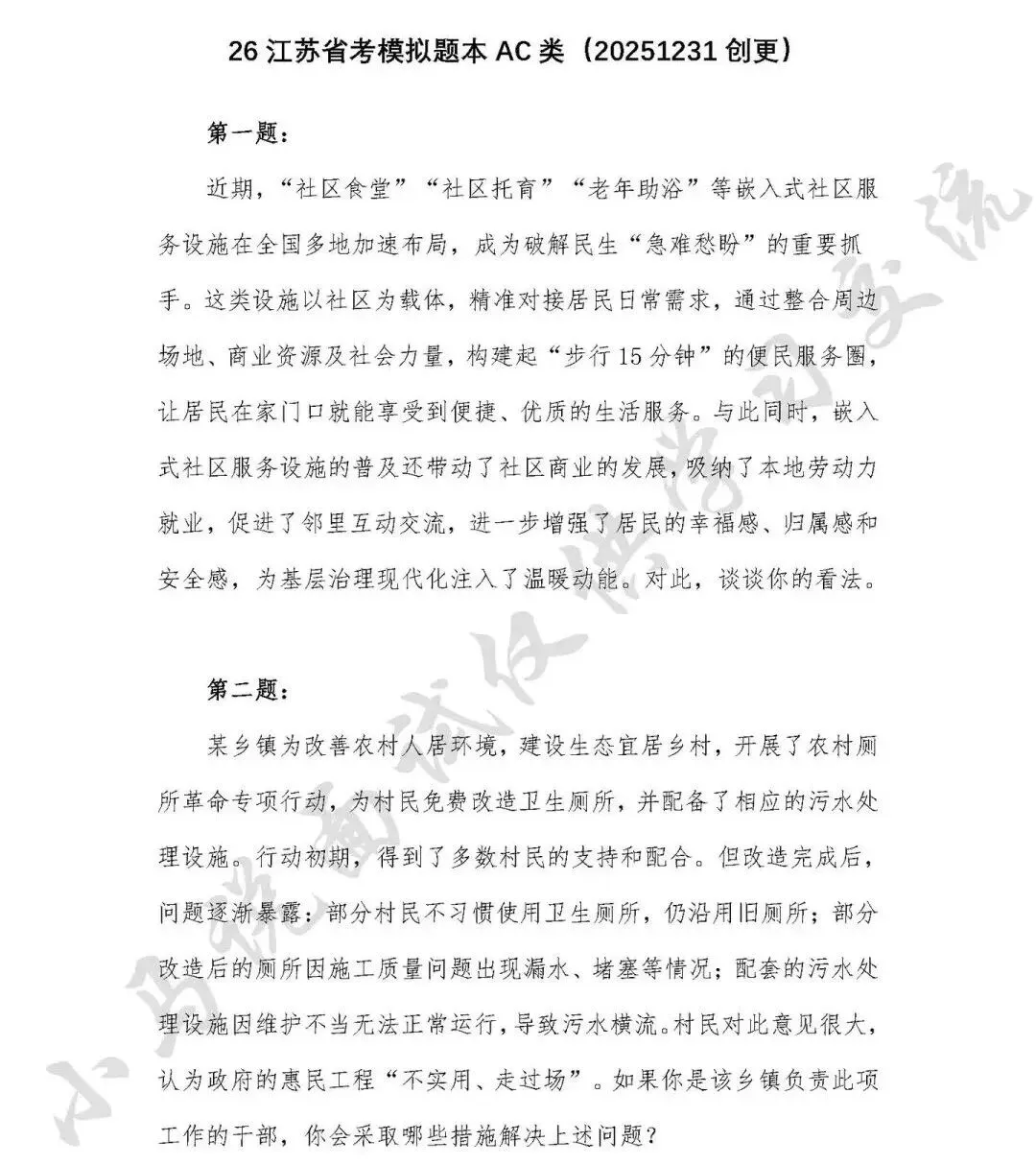 | 25年江苏省考B类面试(回忆版)真题: 某镇A村耕地保护做得很好,入选了全省典型案例,县融媒体中心准备到该村实地采访。镇领导安排正在A村开展耕地保护执法日常巡查的你做好双方的对接。你在巡查中发现村民老李正往农田里运光伏设备。询问老李情况,原来是老李未经批准想在自家农田里安装光伏发电多挣点钱。 你告知李大爷这是违法行为,并进行劝阻。李大爷急了,说:"村干部也没跟我们说啊!我东西都买了怎么办?"这时你接到记者电话,10分钟后到村口。 此时,你该怎么办? 答题示范逐字稿,仅供参考(写了两版,是有区别的,你能分辨哪个答案更好吗?欢迎评论区留言!): 第一版参考答案: 各位考官,面对记者采访、同时发现村民违规行为要立即处理的紧急情况,我会统筹兼顾、轻重缓急,既要守住耕地保护红线,又要回应村民合理诉求,更要保障采访工作顺利开展,具体我会这样做: 第一,稳定老李情绪,稳住现场局面。一方面站在老李角度,理解他想装光伏多挣钱的想法;另一方面要向其说明国家有明确规定,基本农田里不能违规建设光伏设施,这属于耕地非农化行为,是明令禁止的违法行为。让其先暂停设备搬运,告知后续会帮助处理已购设备,如联系厂家退货,或者帮助合规安装盈利等。 第二,立即联系村干部,简明扼要说明情况,告知李大爷未经批准要在农田装光伏,设备已到场、情绪比较激动,让村干部快速赶到农田对接老李,协助沟通,同步老李情况、耕地保护政策,叮嘱村干部先做好安抚,后续协助核查设备采购情况、对接合规安装渠道。 第三,接应记者,做好采访统筹。一方面要对记者来访真诚致谢,欢迎记者采访,同时按照之前对接采访的重点内容、核心亮点,比如耕地网格化管控、村民共管机制、良田提质增效成果等开展接待,接待中如若记者看到村干部处理老李关于光伏设备转移过程,我也会坦诚回应,说明我们执法发现后,正依法规范村民行为,后续也会想办法帮助村民合规安装。既不回避问题,也向记者表达我们村“严格保护耕地和换位思考民生服务”的治理思路,也欢迎记者参与后续流程监督。 第四,后续闭环处置,兼顾合规与民生。记者采访结束后,我会立刻返回农田现场,联合村干部,核查李大爷光伏设备的采购协议,咨询商家是否支持退换货、减少损失;或者帮李大爷梳理合规安装渠道,比如村集体闲置屋顶、村内荒坡荒地等符合政策要求的地块,协助对接相关部门办理审批手续,让其合法合规盈利。 第五,要以此为契机,在村里开展耕地保护政策的集中宣讲大会,通过抖音号,村民微信群、大喇叭,入户走访等方式,把政策讲清楚、传到位,避免再出现类似不知情违规的情况。 最后,这件事也给我提了醒,基层耕地保护工作既要守住底线、严格执法,也要做好服务、提前预防,只有把政策宣传到位、把村民诉求解决到位,才能真正实现耕地保护与民生保障双赢,让典型案例的经验更可复制、可推广。