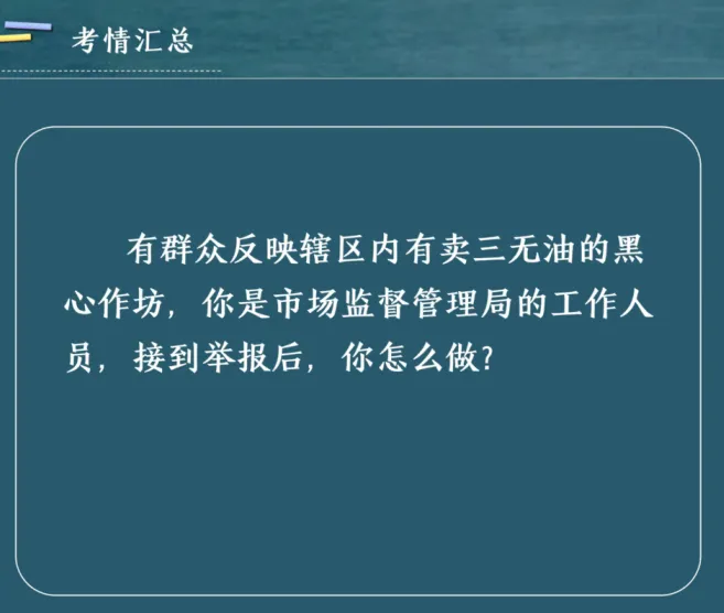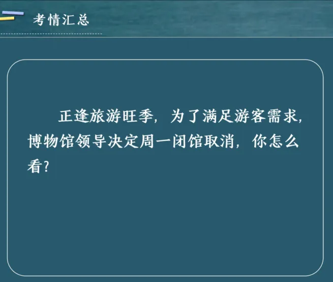 此外,讲座还结合真实考情,模拟了如“处理黑心作坊举报”“博物馆取消周一闭馆”等典型面试题目,指导考生如何在有限时间内构建清晰、务实、有高度的应答思路。