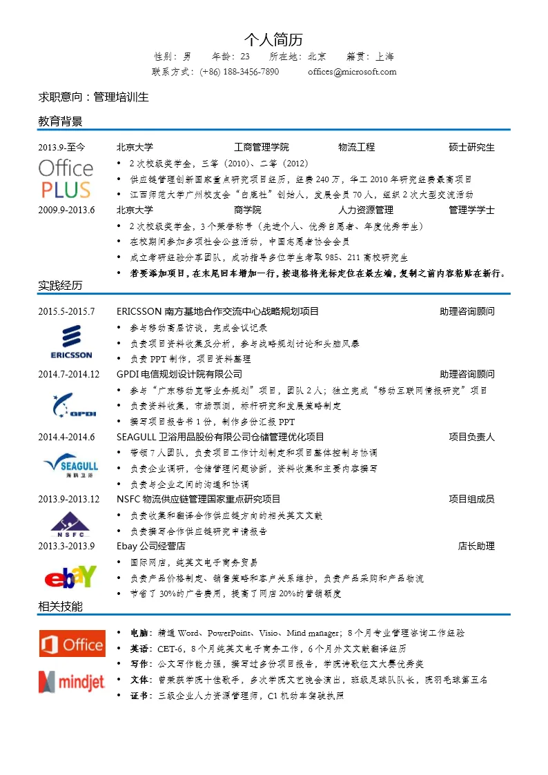 以下为部分简历模板展示区