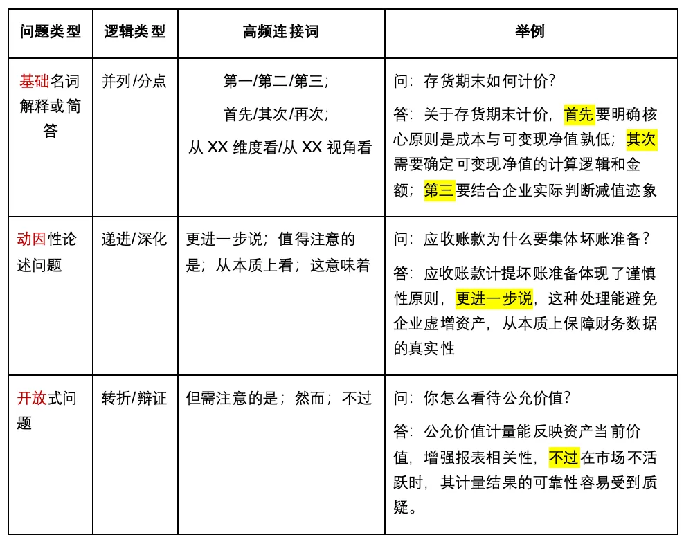 除了通过扎实的专业知识回答,在技巧方面,我们可以通过构建场景化连接词体系,可快速实现表达逻辑的优化升级。