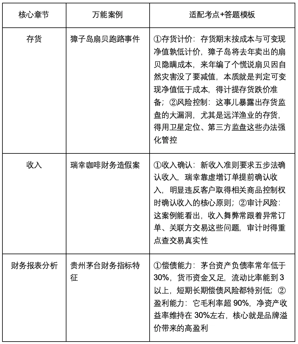案例别只说事儿,一定要和知识点强绑定。提獐子岛就必须带存货跌价,提瑞幸就紧扣收入确认原则,不然说再多也没用,反而显得游离。