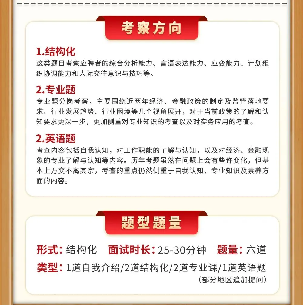 ✅综合考查:25-30分钟内完成6道题,涵盖结构化、专业题与英语,全面挑战你的综合素质、专业深度和临场反应。
