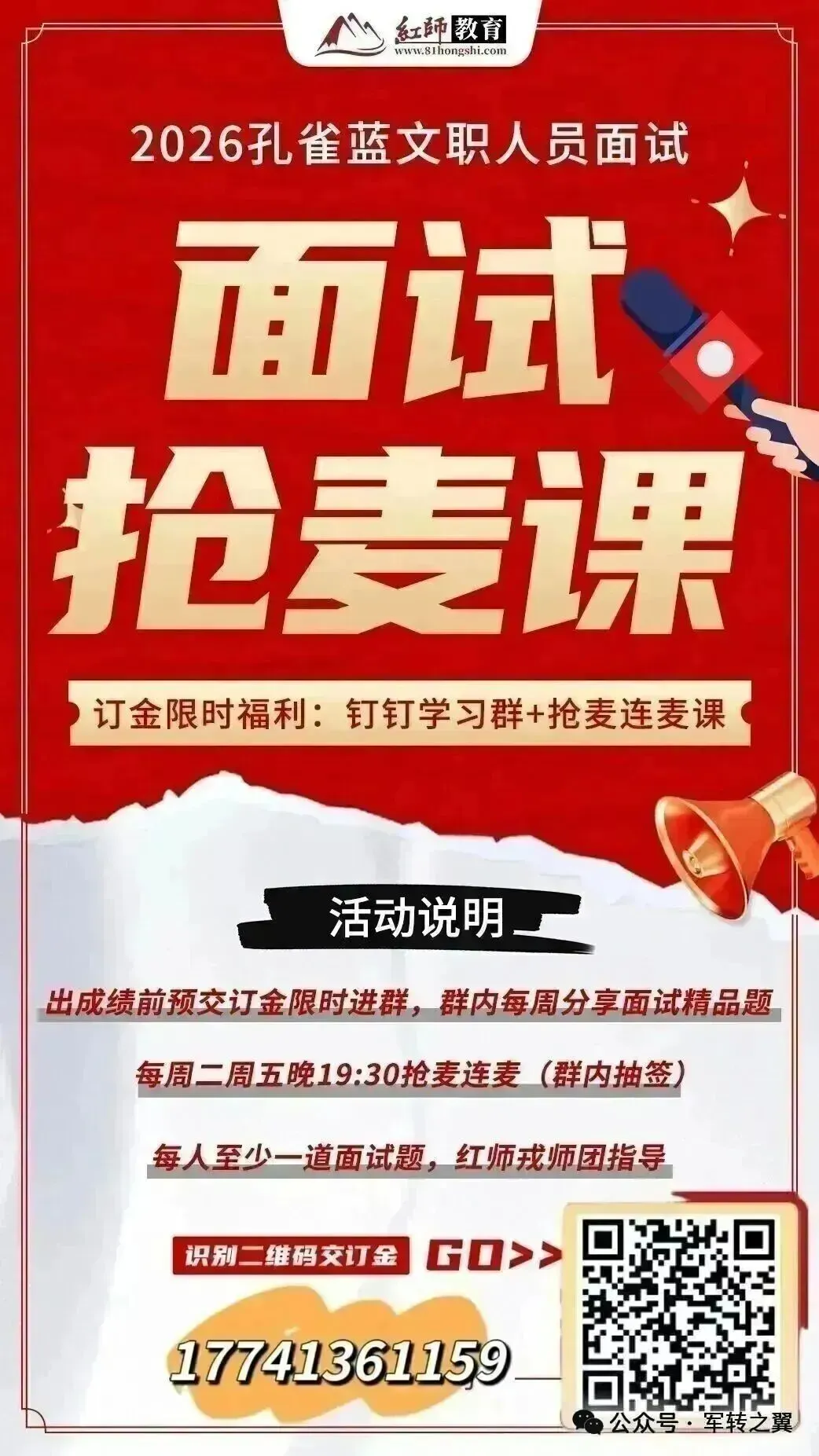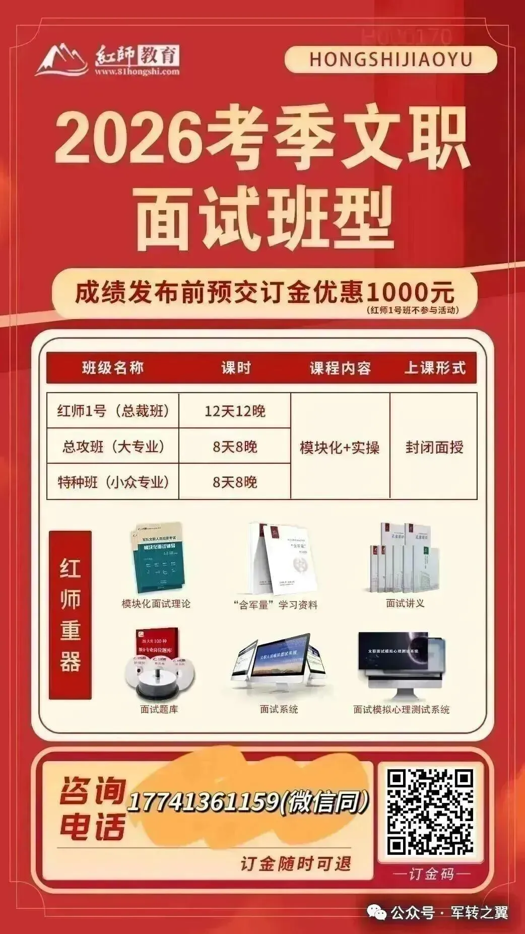 机会留给有准备的人!有关军队文职报考的任何问题,都可以添加红师闲云老师微信咨询:17741361159(微信同)
