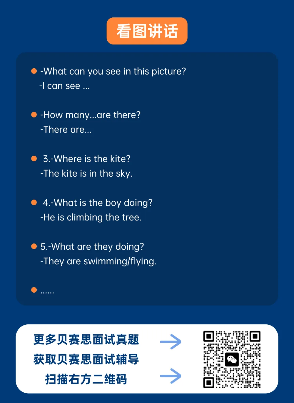 看图说话:考查的侧重点随年龄增长而提升。低龄学生主要描述画面内容,而高年级学生需在此基础上体现语言组织、细节观察与逻辑叙述能力。