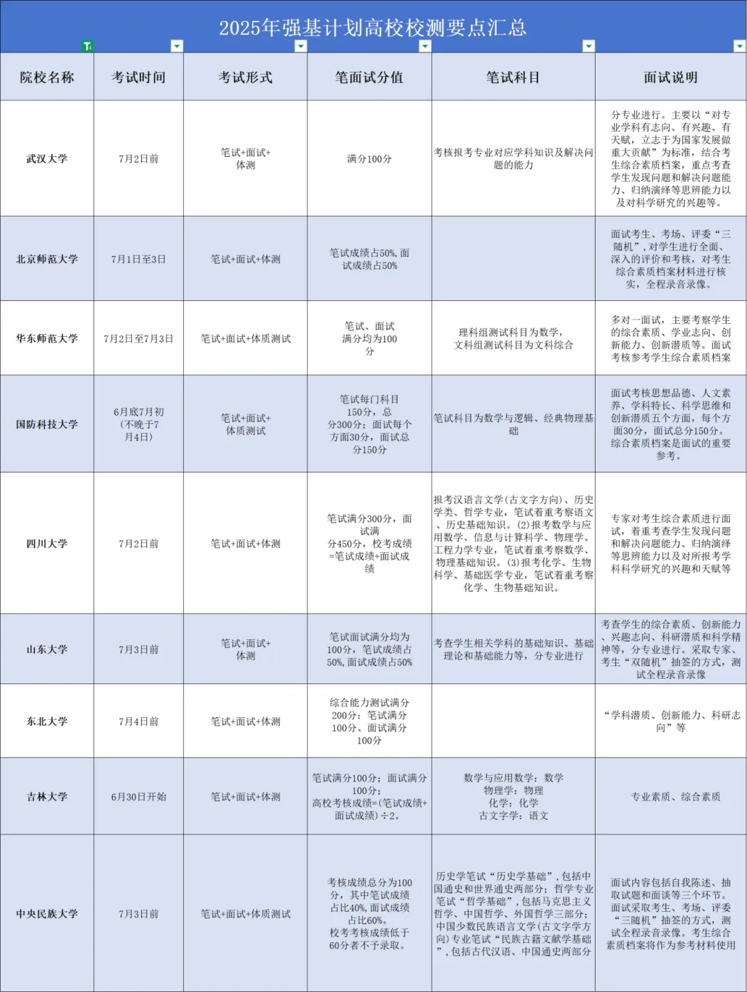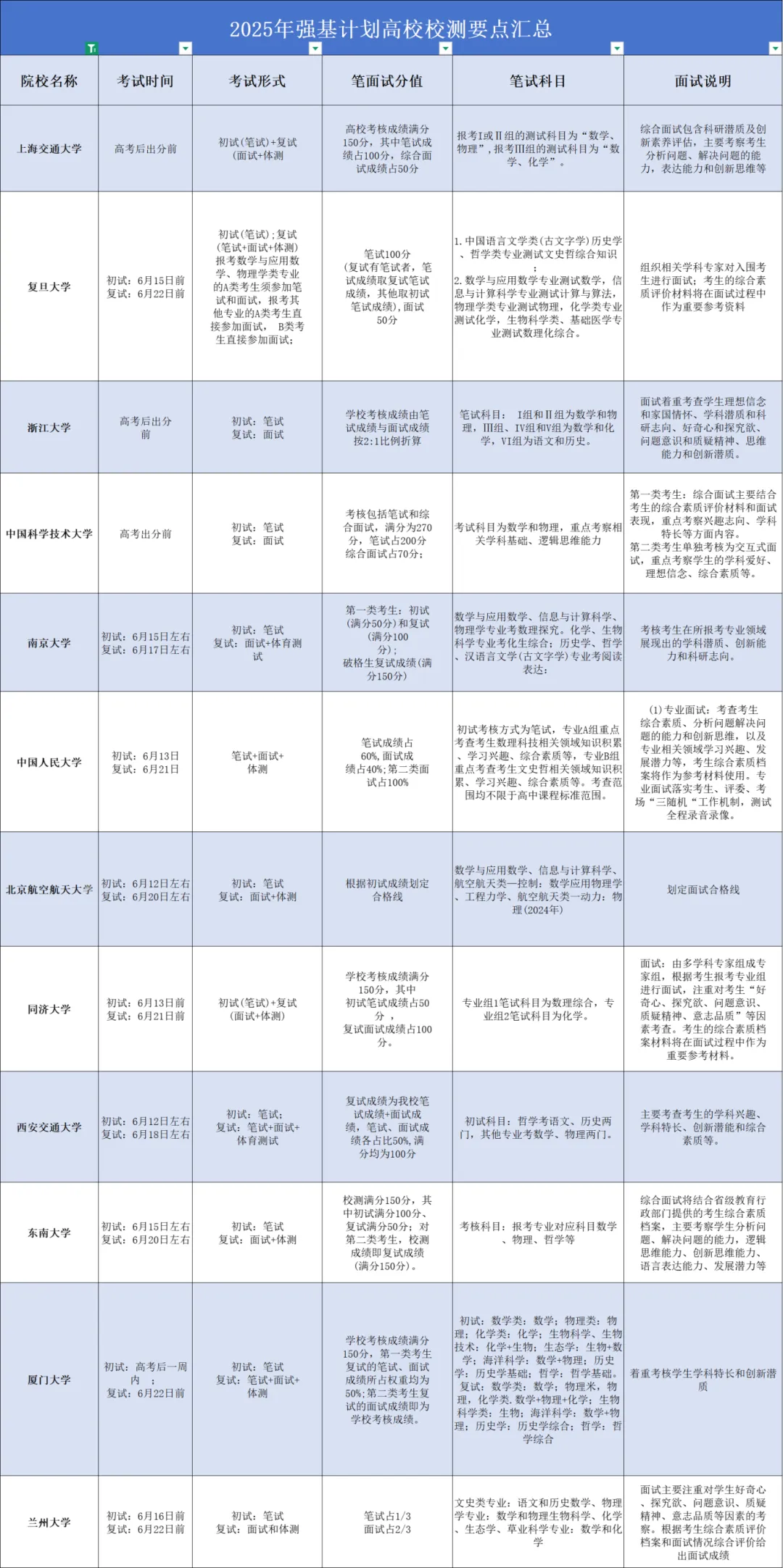 注:本文均以2025年各高校强基计划校测形式为参考,最新校测考情请以当年高校发布的强基校测通知为准。