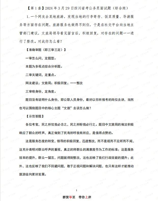 为大家整理了【历年四川省考面试真题解析】,满满78页,题题有解析,送给备考四川省考面试的小伙伴们(文末免费领)