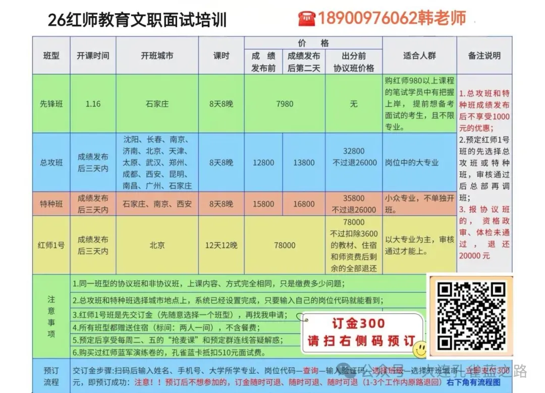 ⚠️请务必扫韩老师发的订金码,填上姓名、电话和岗位代码(2026开头),选择上课城市,直接支付就是预定成功了。才能确认为我的学员,提供后继服务!!!
