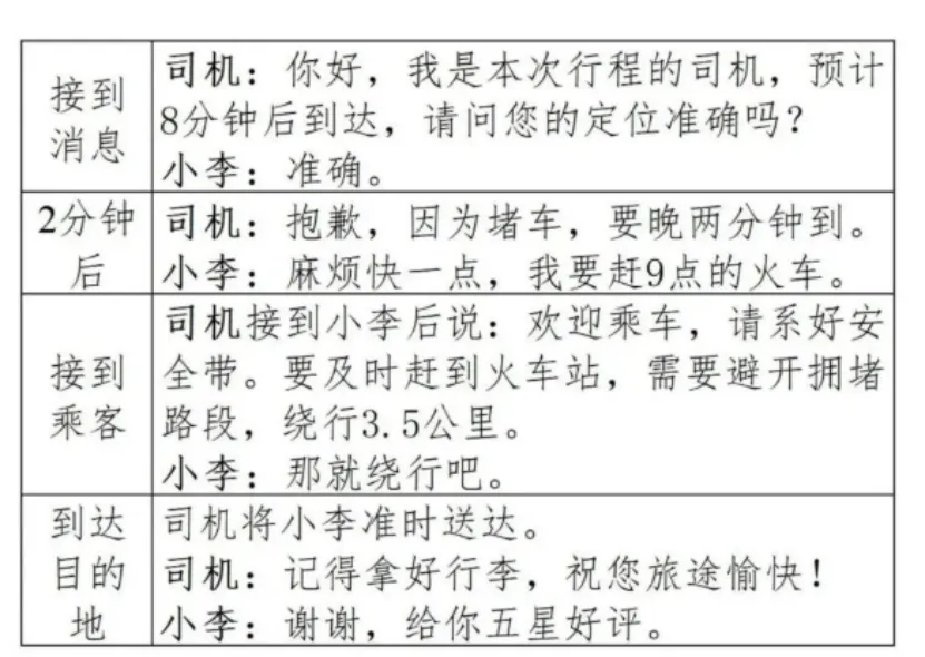 一名乘客通过滴滴平台打车前往火车站,车辆预计8:30到达。以下是两人的对话: