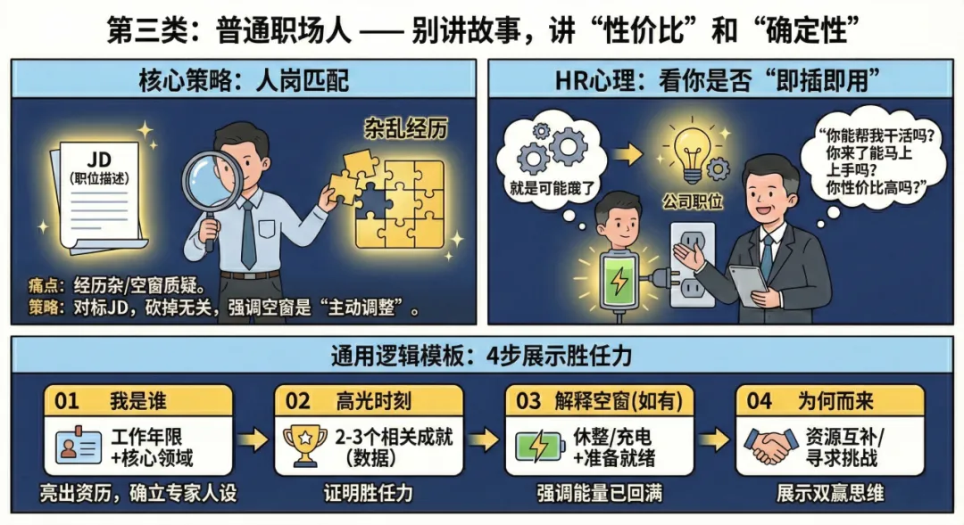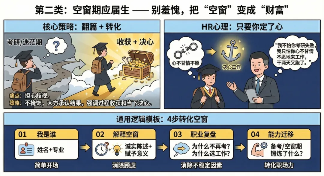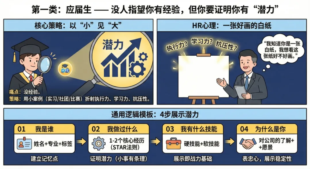 今天,我针对应届生、空窗期应届生、普通职场人三类人群,提供一套“核心策略 + 填空式模板”。