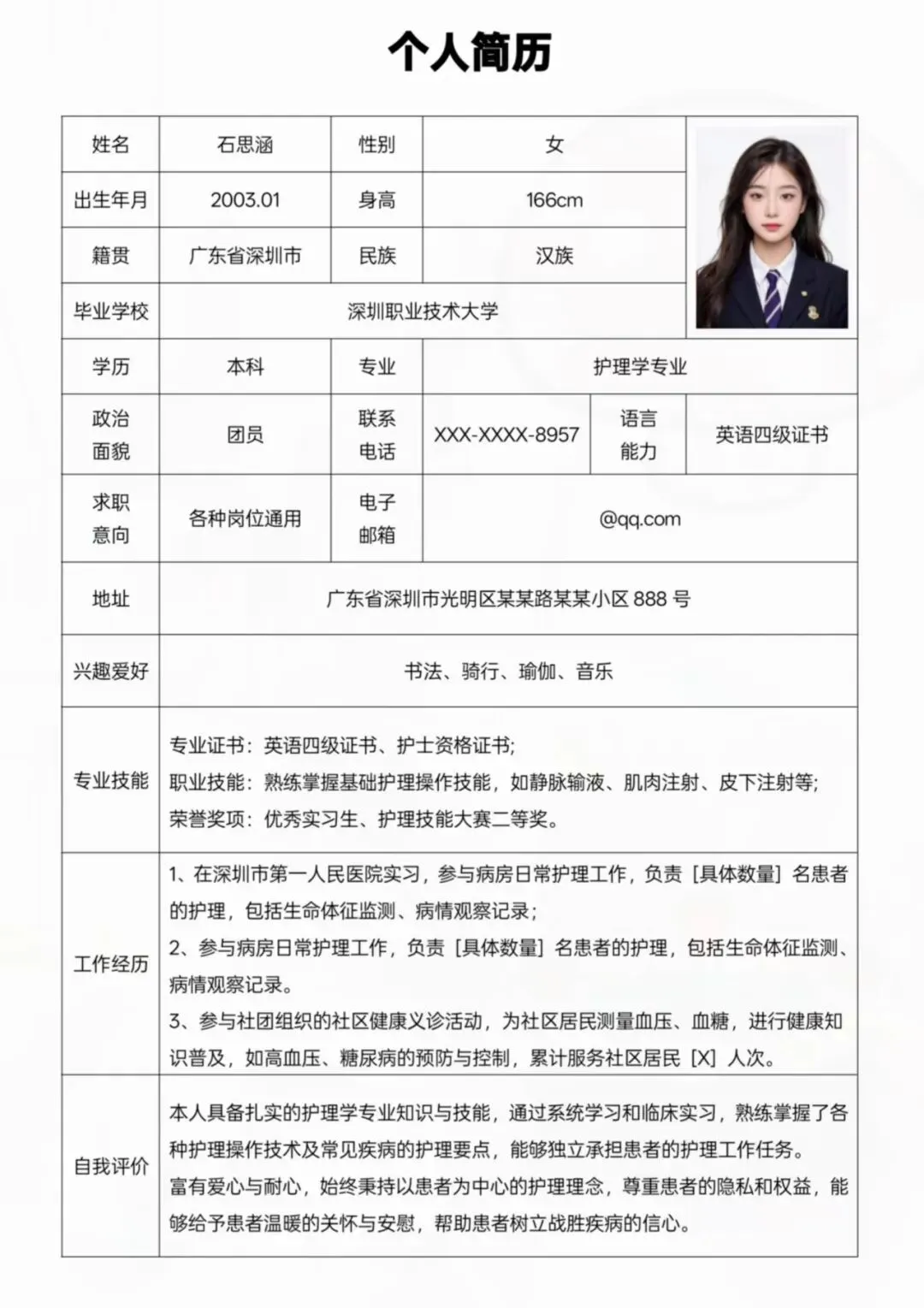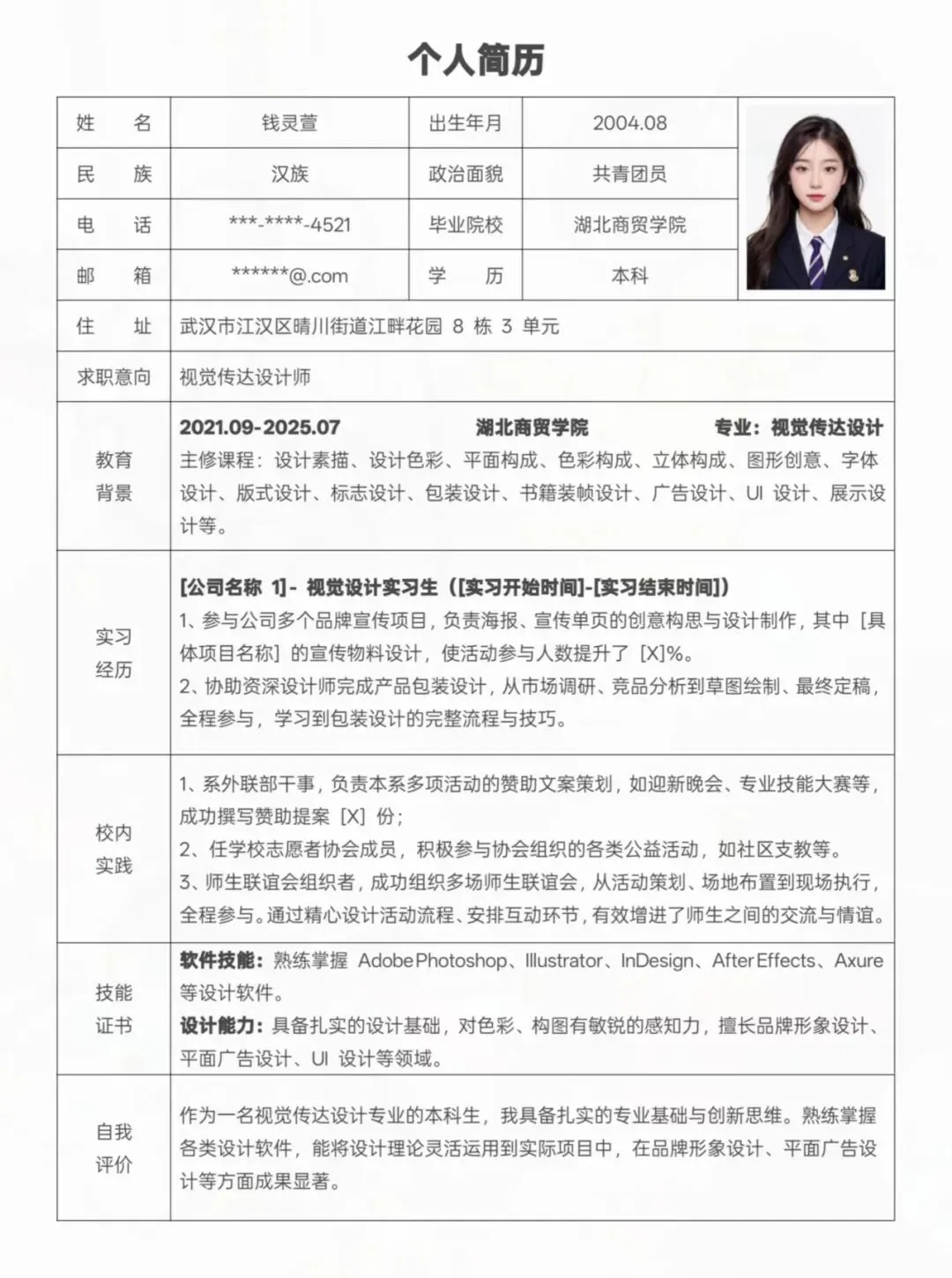 清晰写上姓名、联系方式📱、电子邮箱等,方便 HR 联系你。