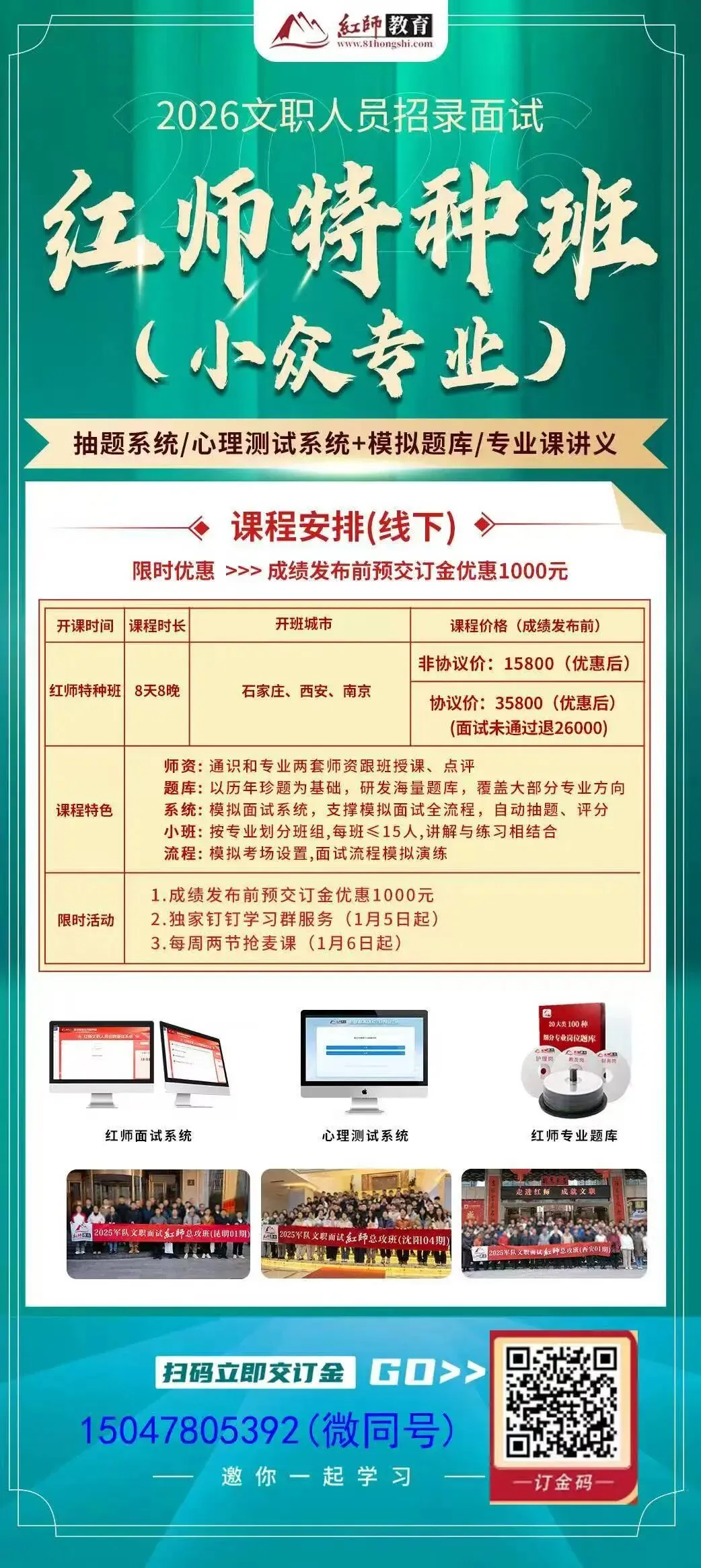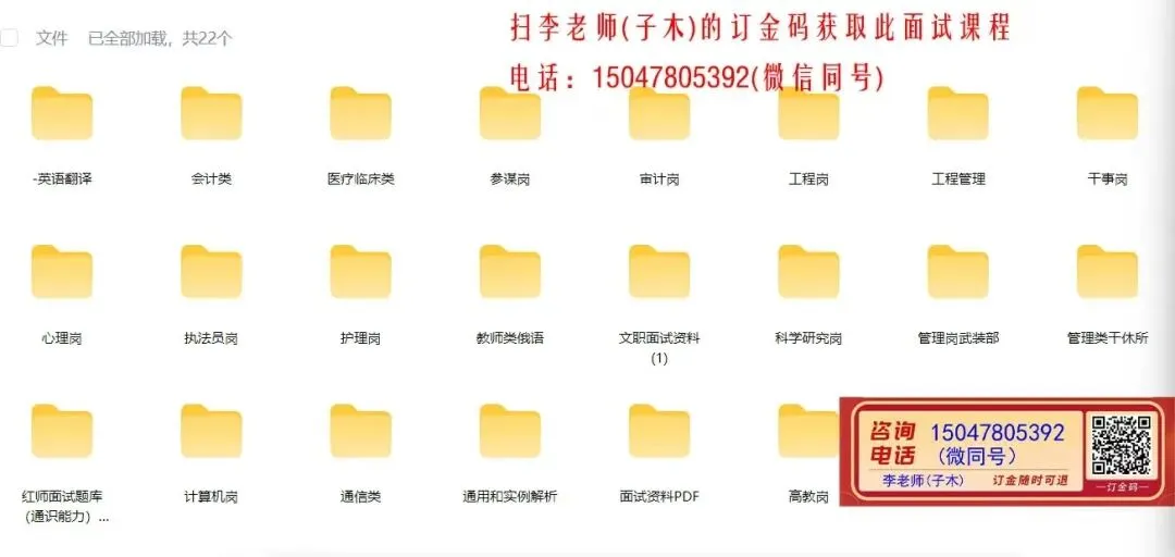 (1月6日开课,每周三、五晚19点开始直播,线上实战面试演练配有专业老师点评辅导)等等,通过扫李老师面试订金码缴纳订金的同学,还可以额外赠送李老师精心整理的文职面试资料全集和专业岗位资料,交完订金班次信息截图发给我即可领取!