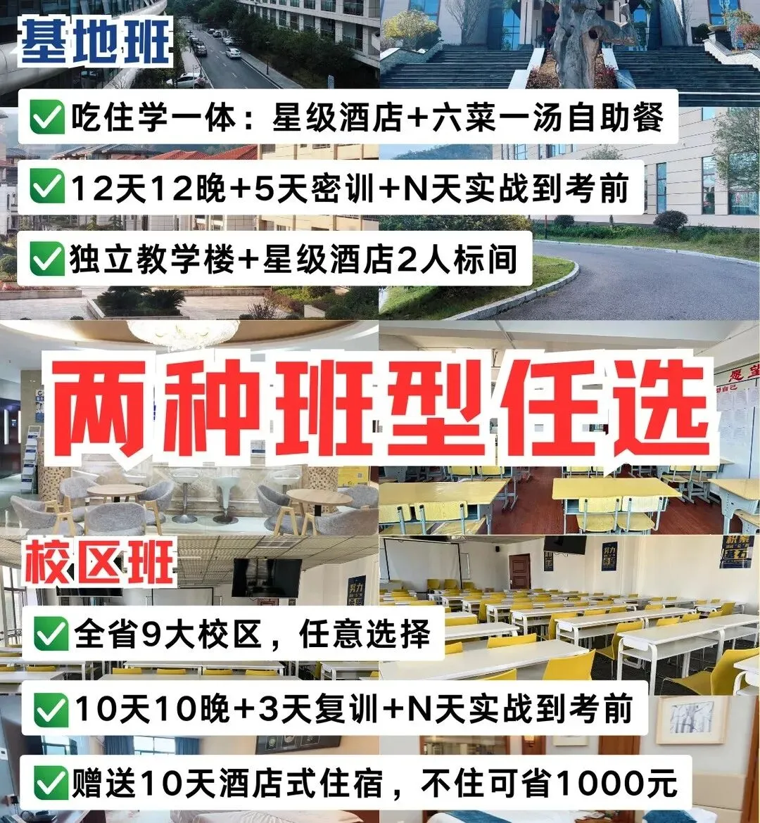 基地班:12天12晚 +5天密训+N天实战直至考前!