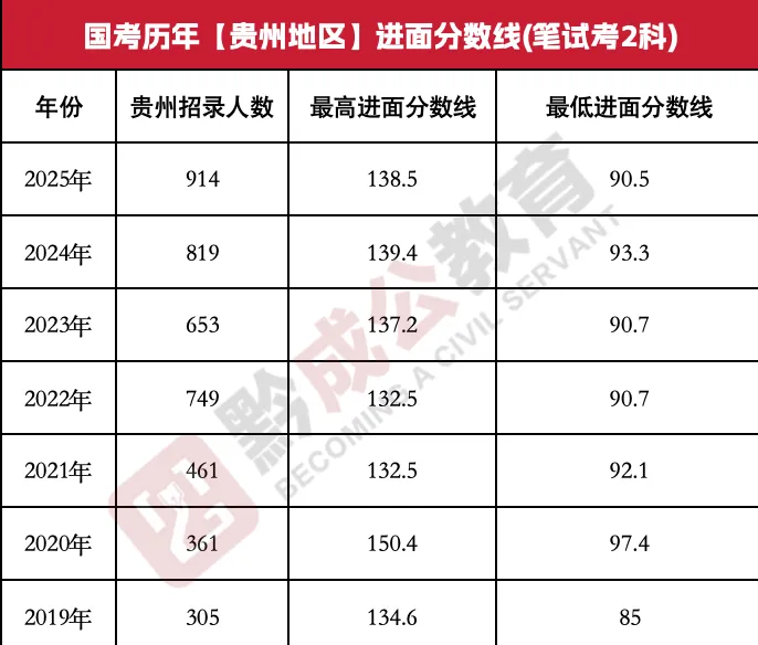 在贵州,如果报考岗位笔试仅考查“行政职业能力测验”和“申论”两科,满分为200分。根据近年数据,进入面试的分数范围大致在90分至130分之间。其中最高分数可达130分以上,最低则在90分以上。