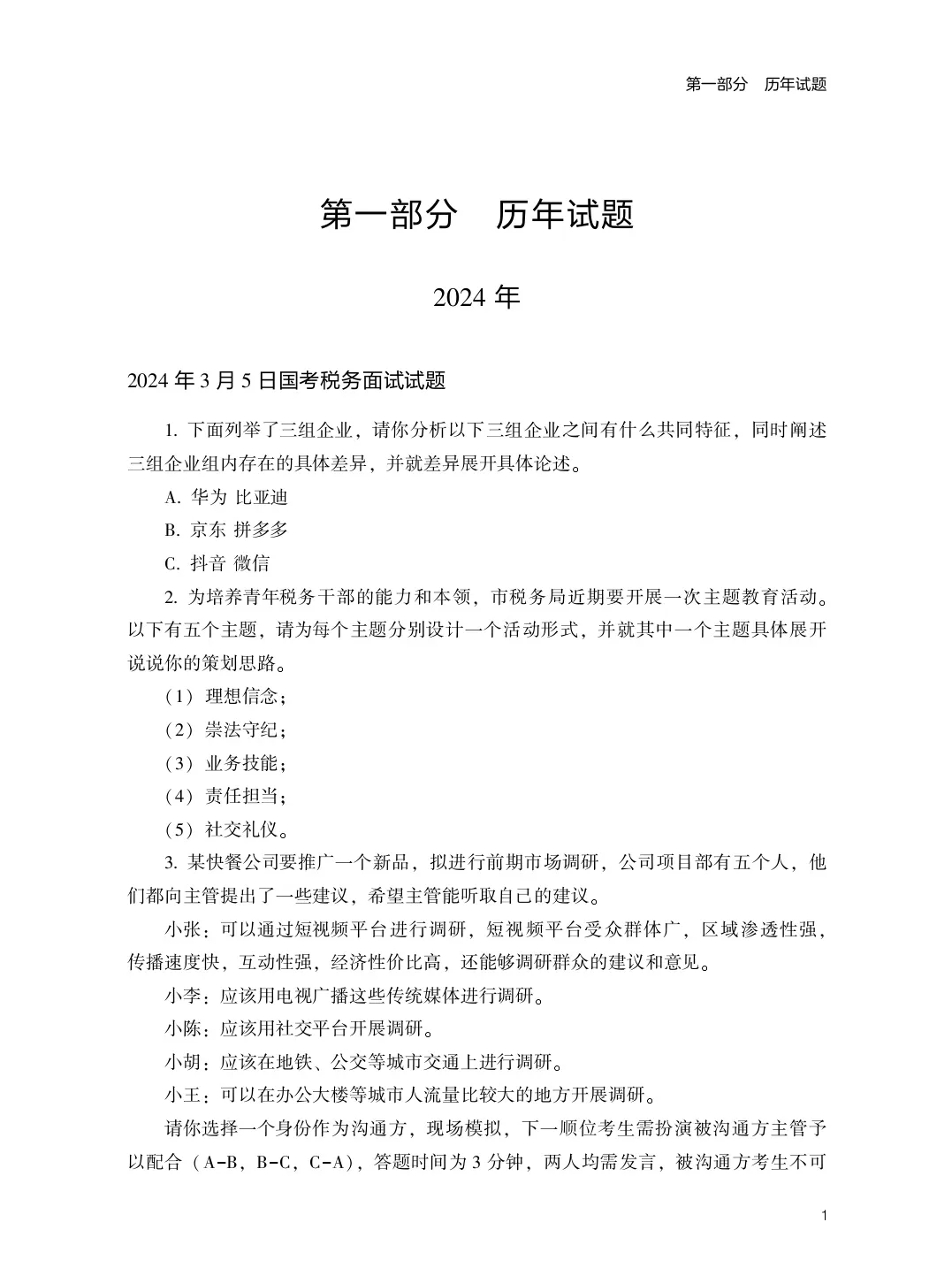 张老师给大家整理了往年面试真题,给大家做面试参考: