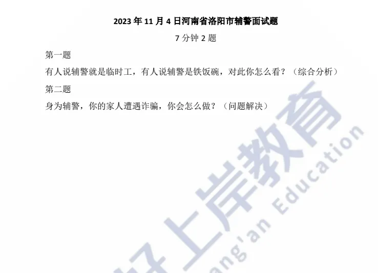 洛阳辅警面试旨在全面评估考生是否具备胜任辅警岗位的核心素质与能力,主要聚焦两大方面: