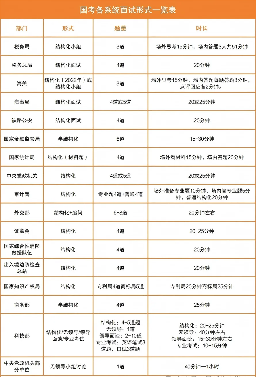🔹结构化面试:入境、统计局、海事局、审计署、人民银行、证监会、消防救援队伍、金融监管总局、知识产权局等。
