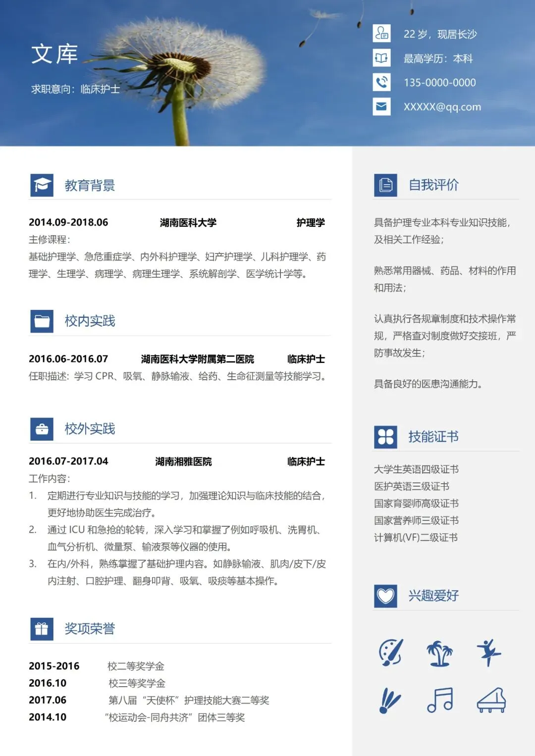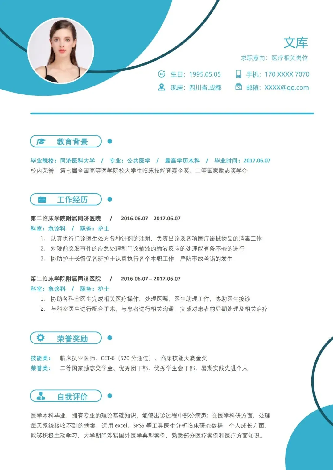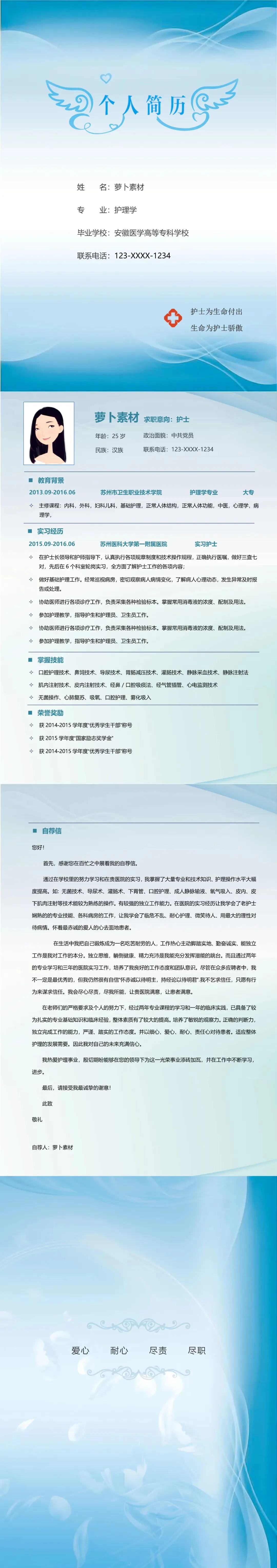 医护简历(单页)
