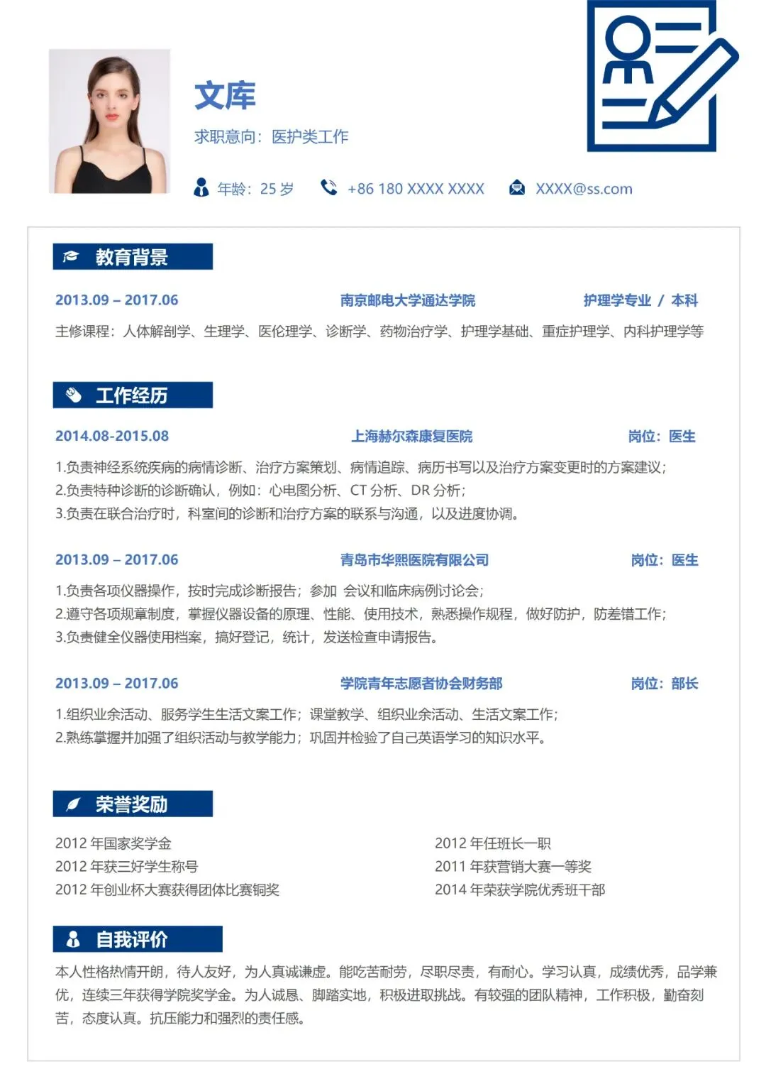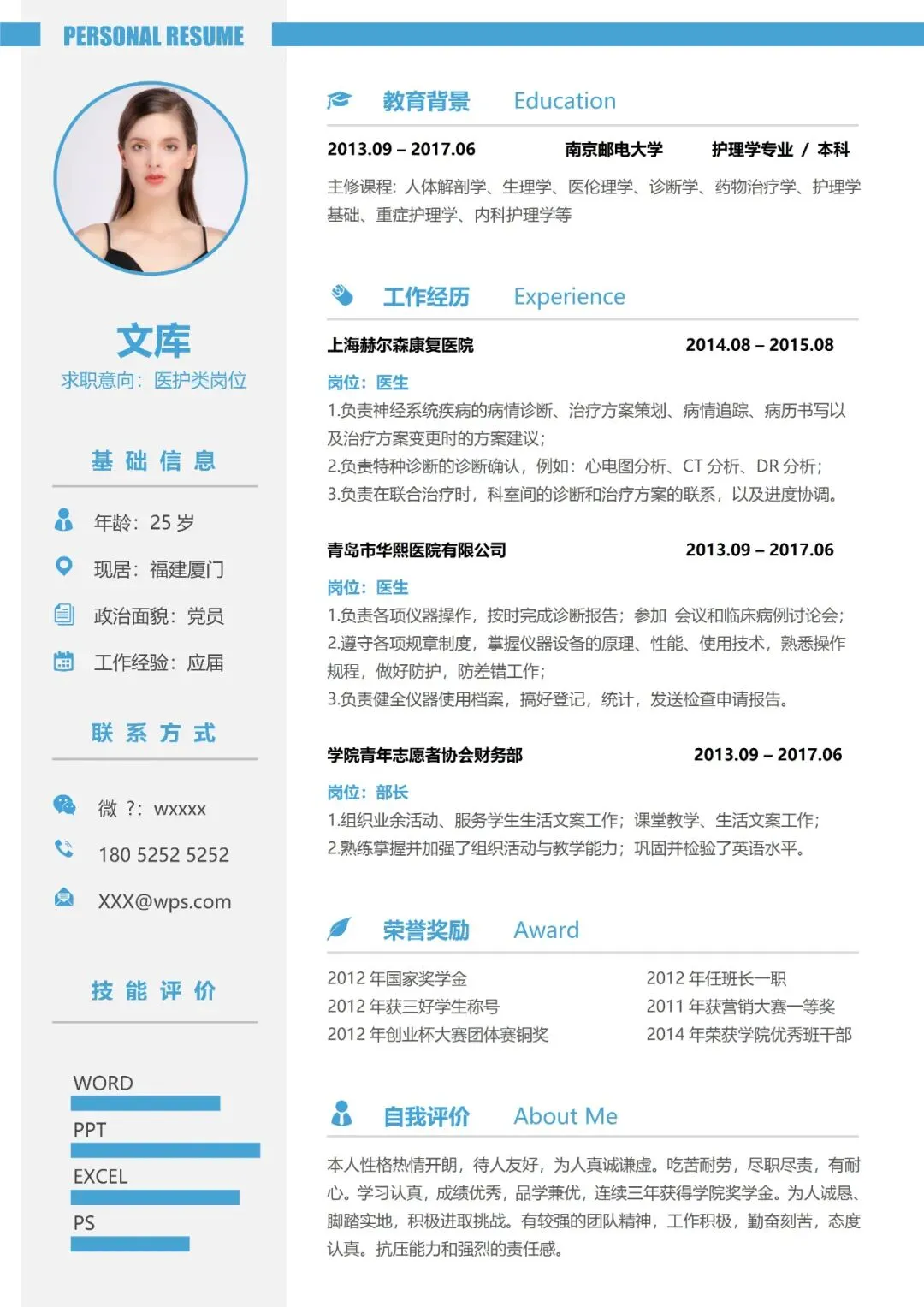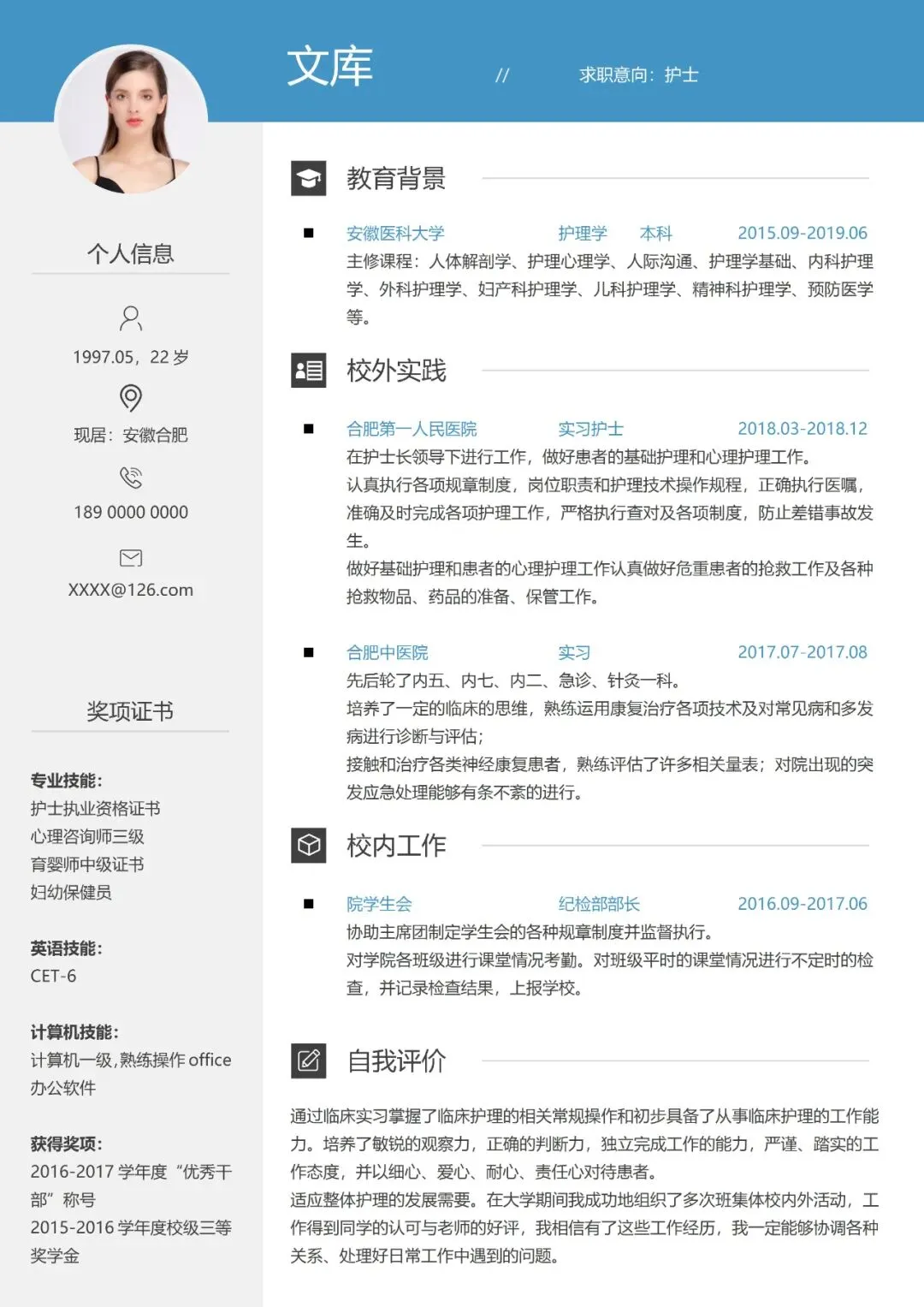 医护简历(单页)