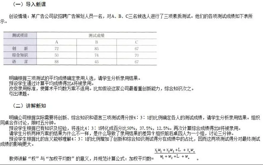 1.假如这家广告公司同样看重创新和语言能力,三项测试得分按2∶1∶2的比例确定测试成绩,此时谁将被录用?说一说自己对权的作用的理解。