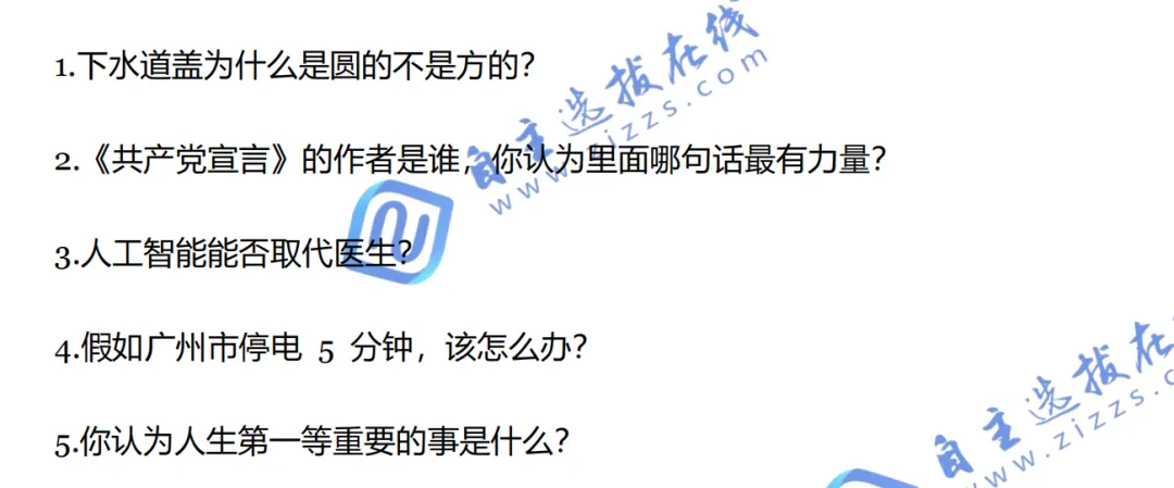 由于中山大学强基计划校测仅考面试,无笔试考核,因此以下仅分享面试考情及部分试题。