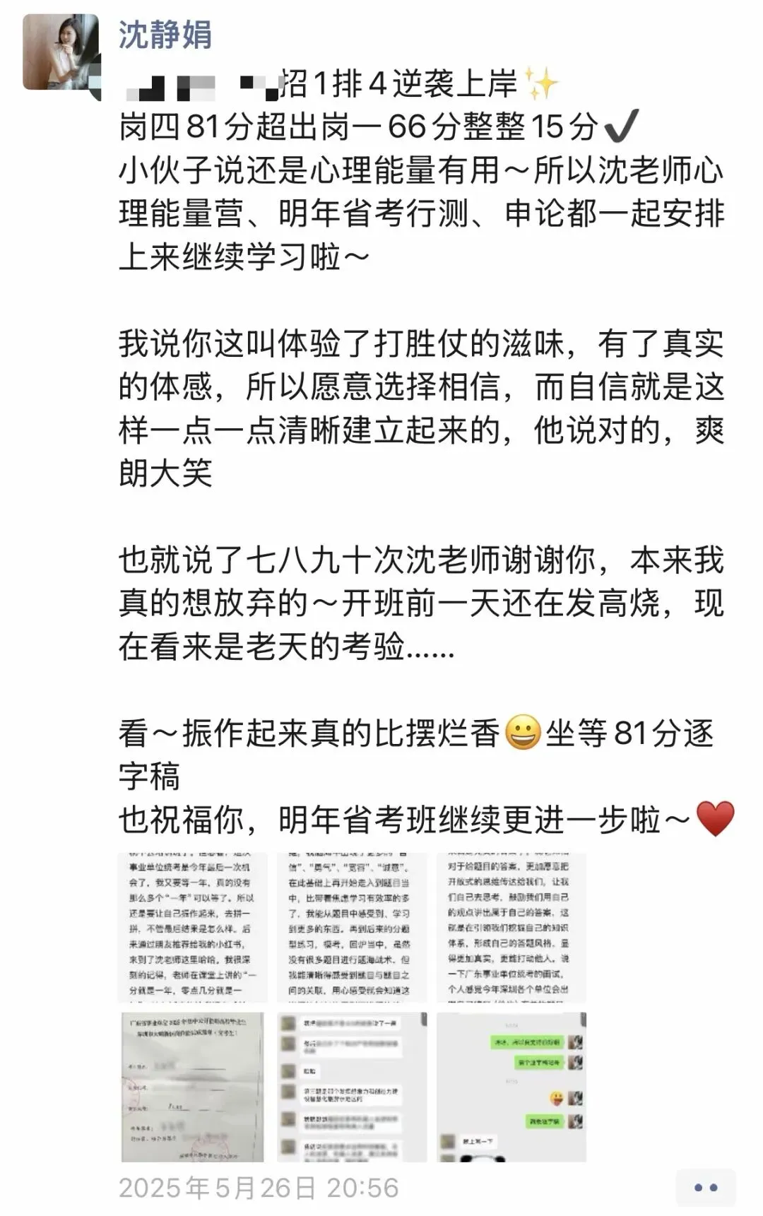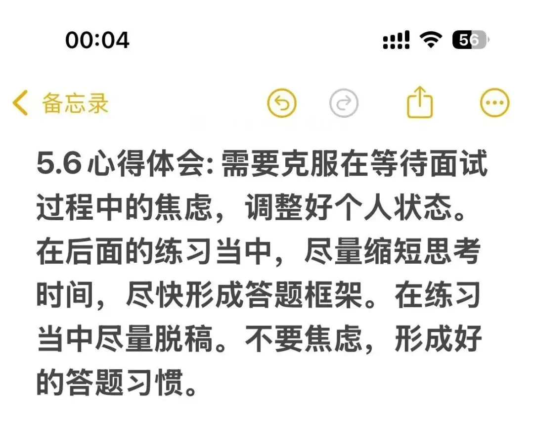 面试班第一天带给我的感触特别深刻,我认识到不同的面试方式所要选拔的人也不同,沈老师说要意识到带着诚意、带着上岸的愿景去学习才能够拿到一个好的结果,沈老师真的很懂每个阶段考生的心态,像我这种排名比较后的,确实是抱着“试一试”的心态来报班的,沈老师一下子就点醒了我,尤其是沈老师的那句“一分就是一年,零点几分就是一年”,真的让我深有感触。