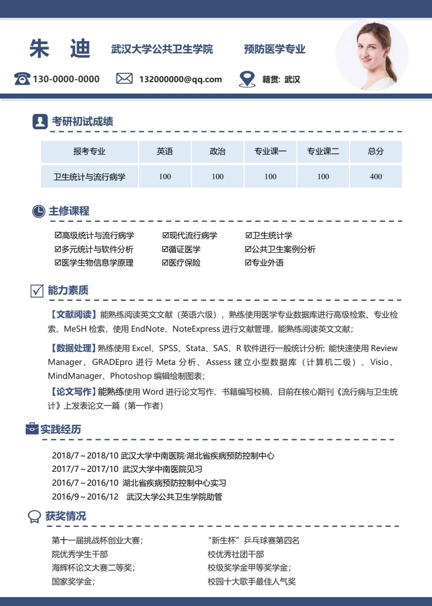 「导师喜欢的研究生复试简历模板」