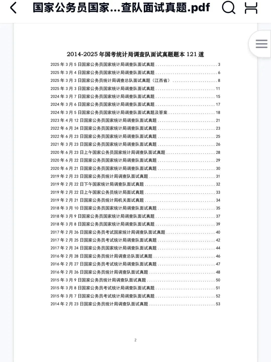 >国家统计局调查队面试真题及答案解析2014-2025年真题本121道