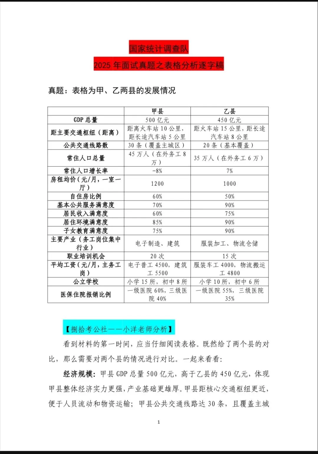 >国家统计调查队面试真题解析(表格分析)&课程安排