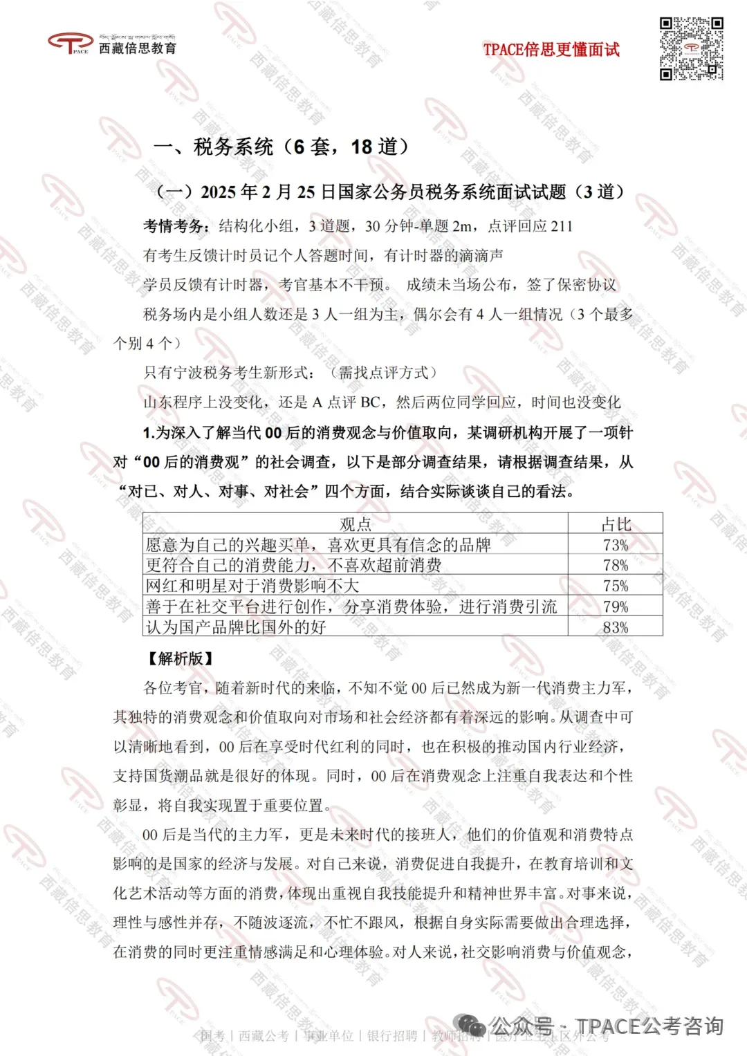 面试题型:以统计图表分析、调查实务类组织管理、综合分析为主,偶有应急应变