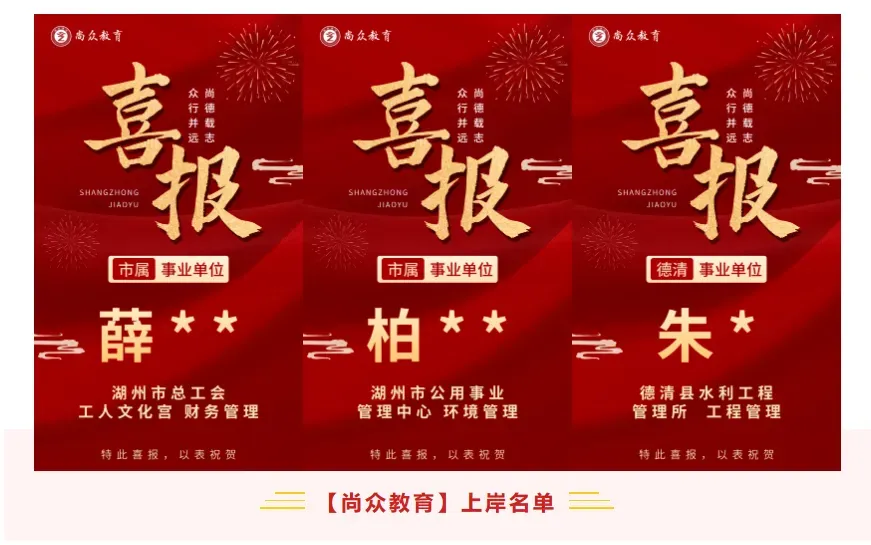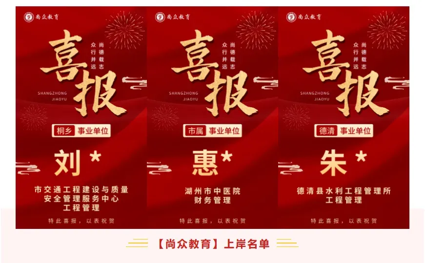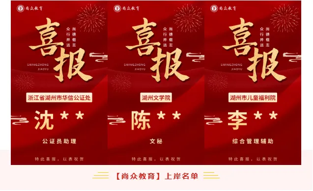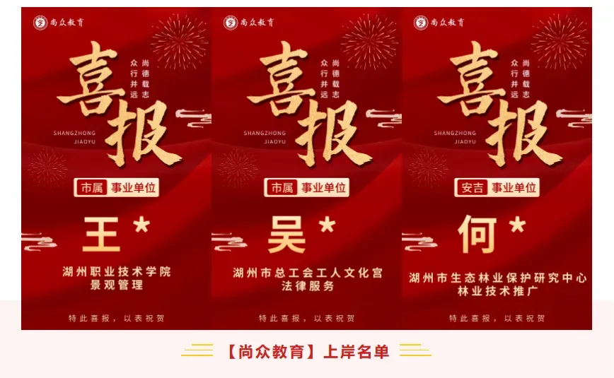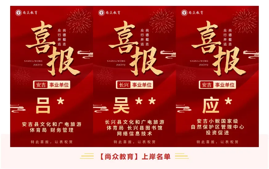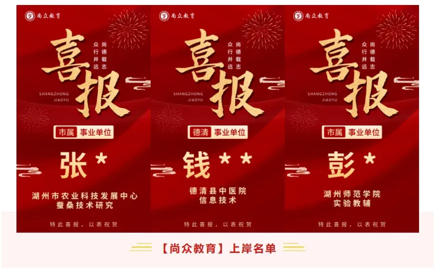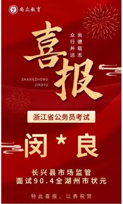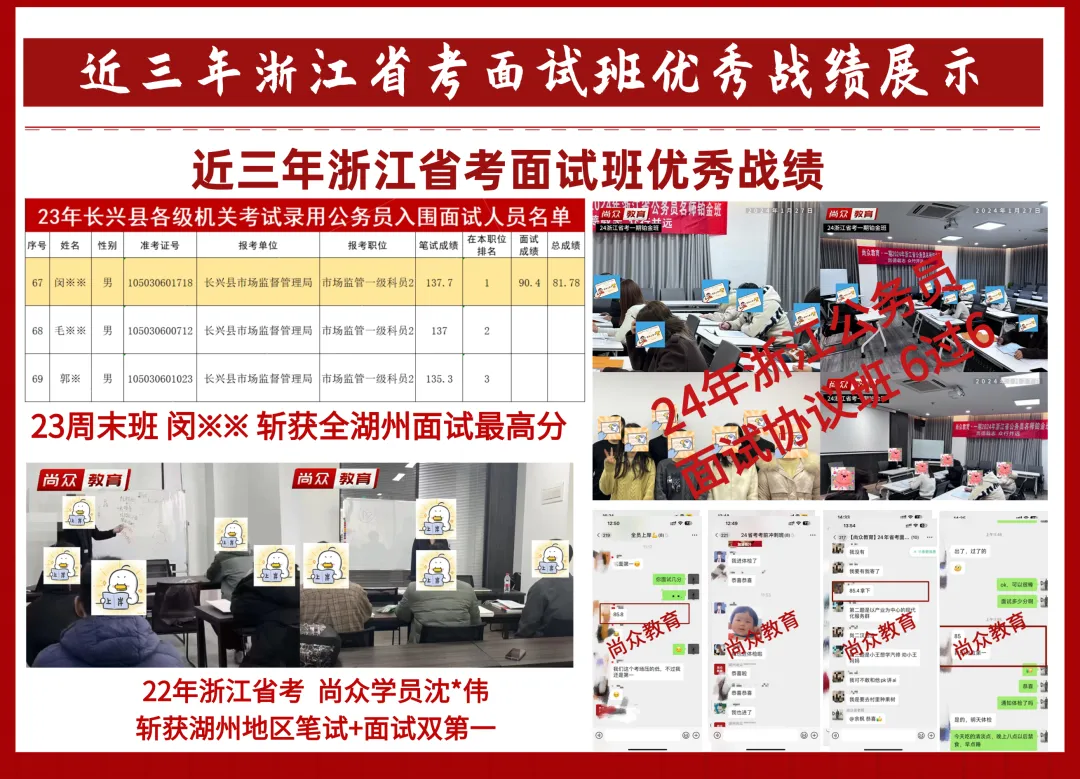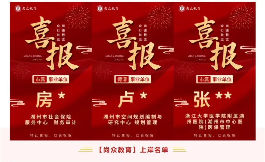 尚众教育作为一家公职类考试机构,深谙公务员、选调生、事业编、国企等公职类考试多年,一直坚持小班授课,保证高效学习、练习。近年来,培训湖州事业单位上岸通过率保持在70%以上,有近一半学员在面试中拿下全场第一的好成绩,在各类考试培训中均获得了极佳的成果和口碑!