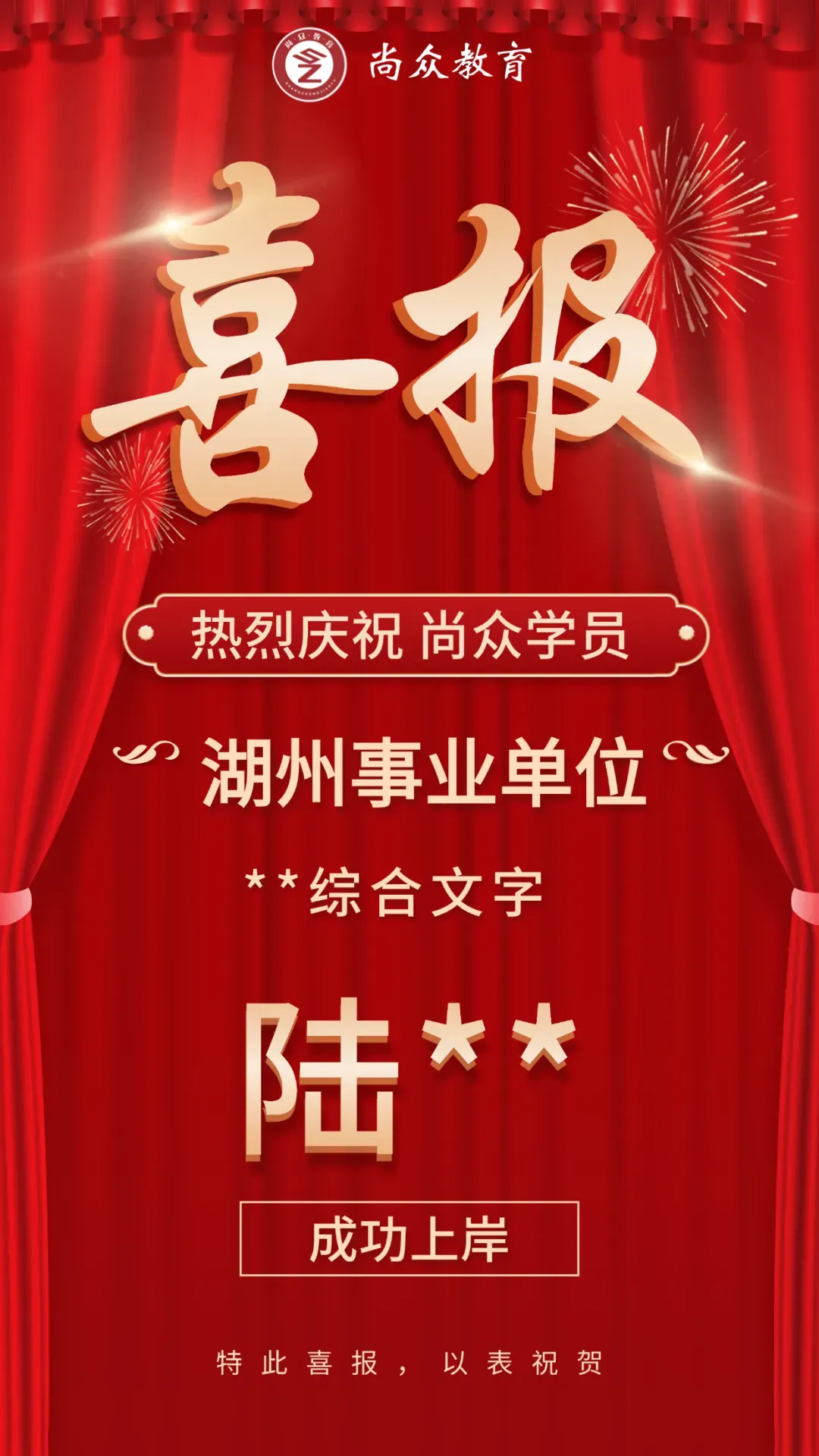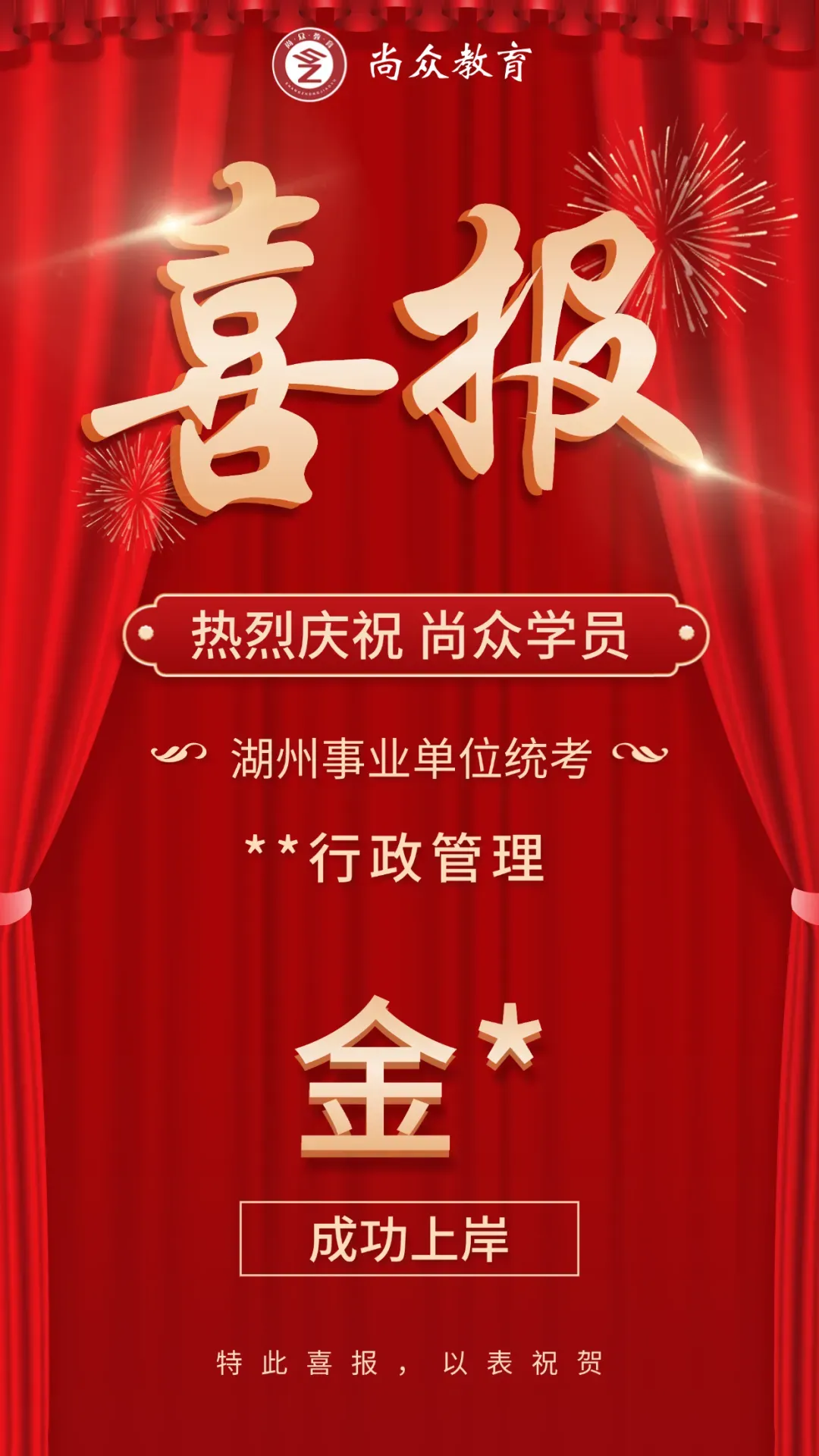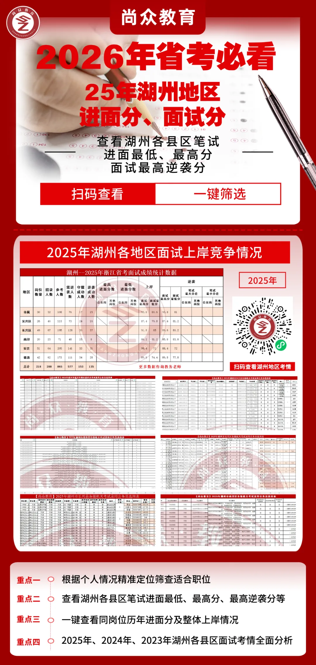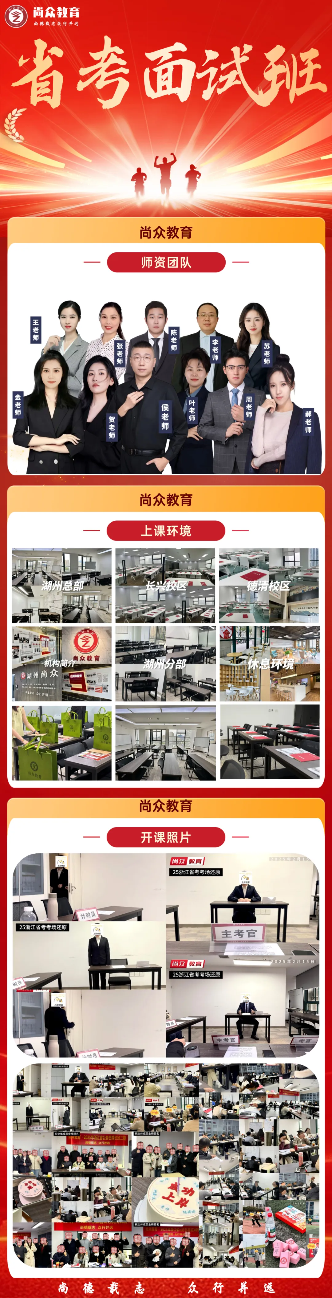 尚众教育作为一家公职类考试机构,深谙公务员、选调生、事业编、国企等公职类考试多年,一直坚持小班授课,保证高效学习、练习。近年来,培训湖州事业单位上岸通过率保持在70%以上,有近一半学员在面试中拿下全场第一的好成绩,在各类考试培训中均获得了极佳的成果和口碑!