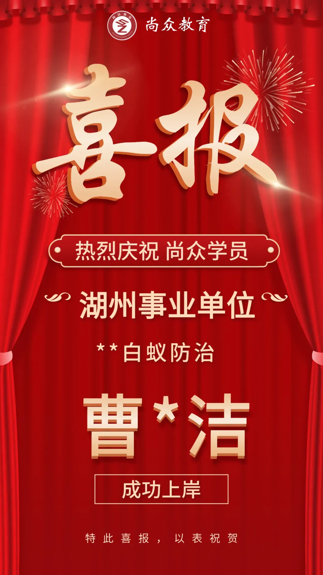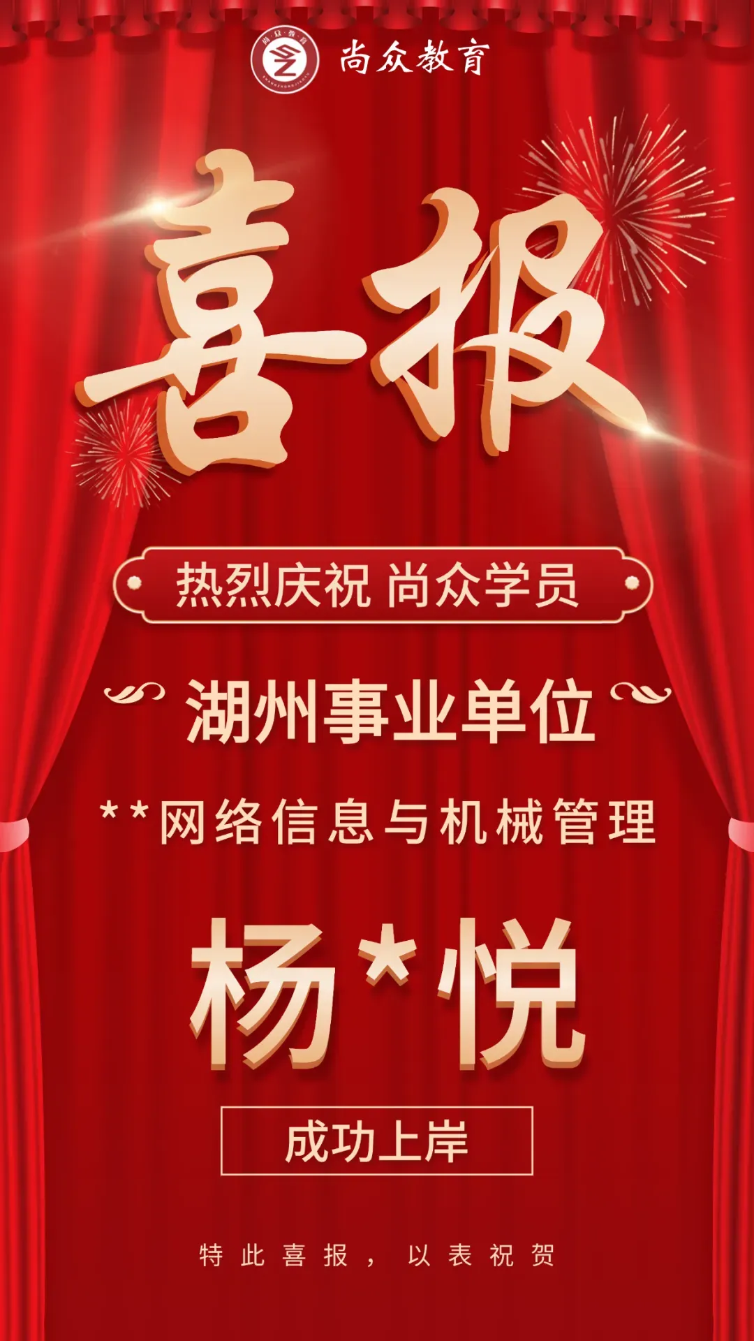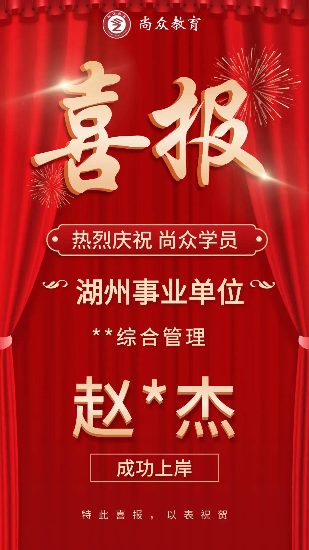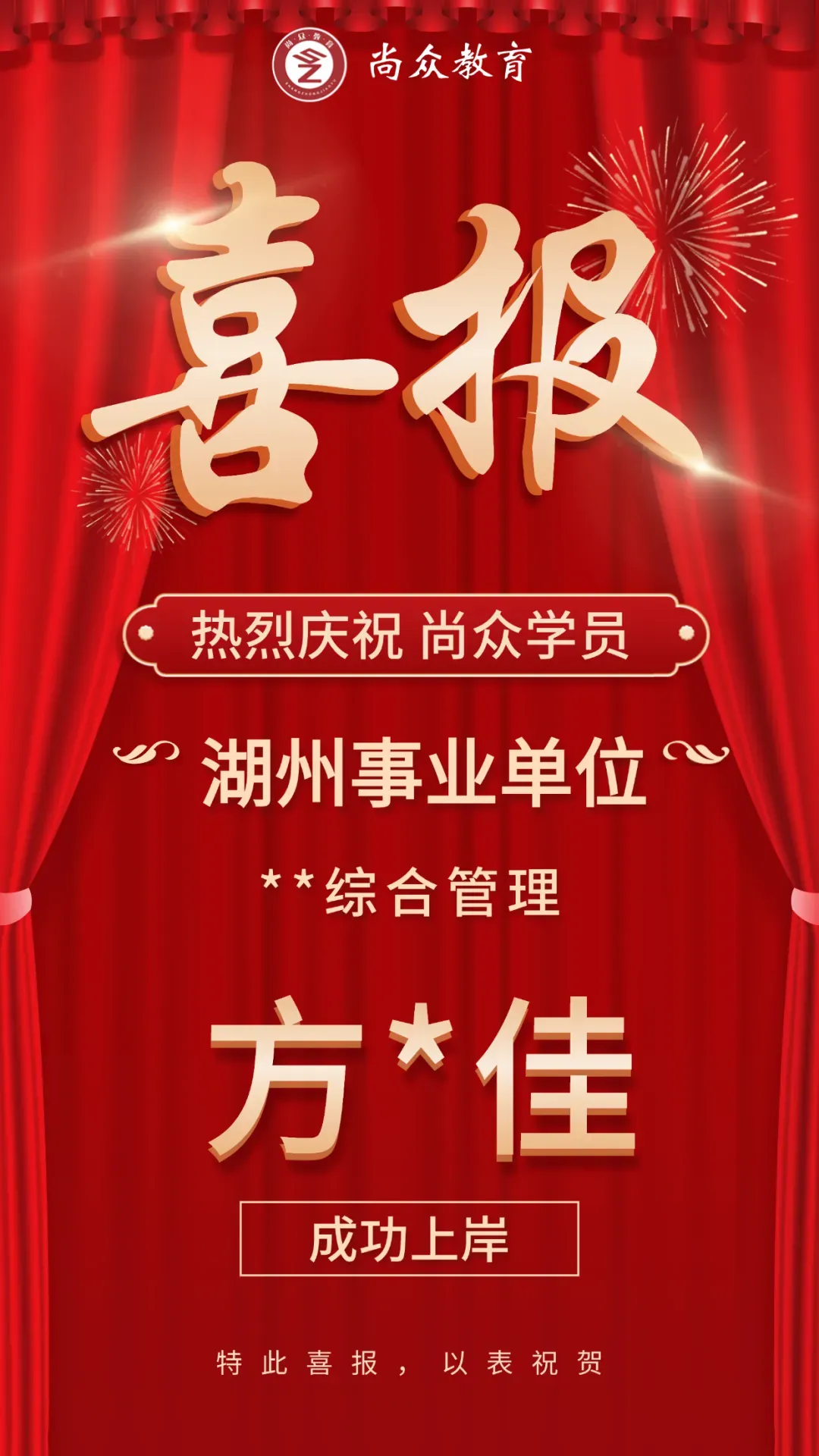尚众教育作为一家公职类考试机构,深谙公务员、选调生、事业编、国企等公职类考试多年,一直坚持小班授课,保证高效学习、练习。近年来,培训湖州事业单位上岸通过率保持在70%以上,有近一半学员在面试中拿下全场第一的好成绩,在各类考试培训中均获得了极佳的成果和口碑!
