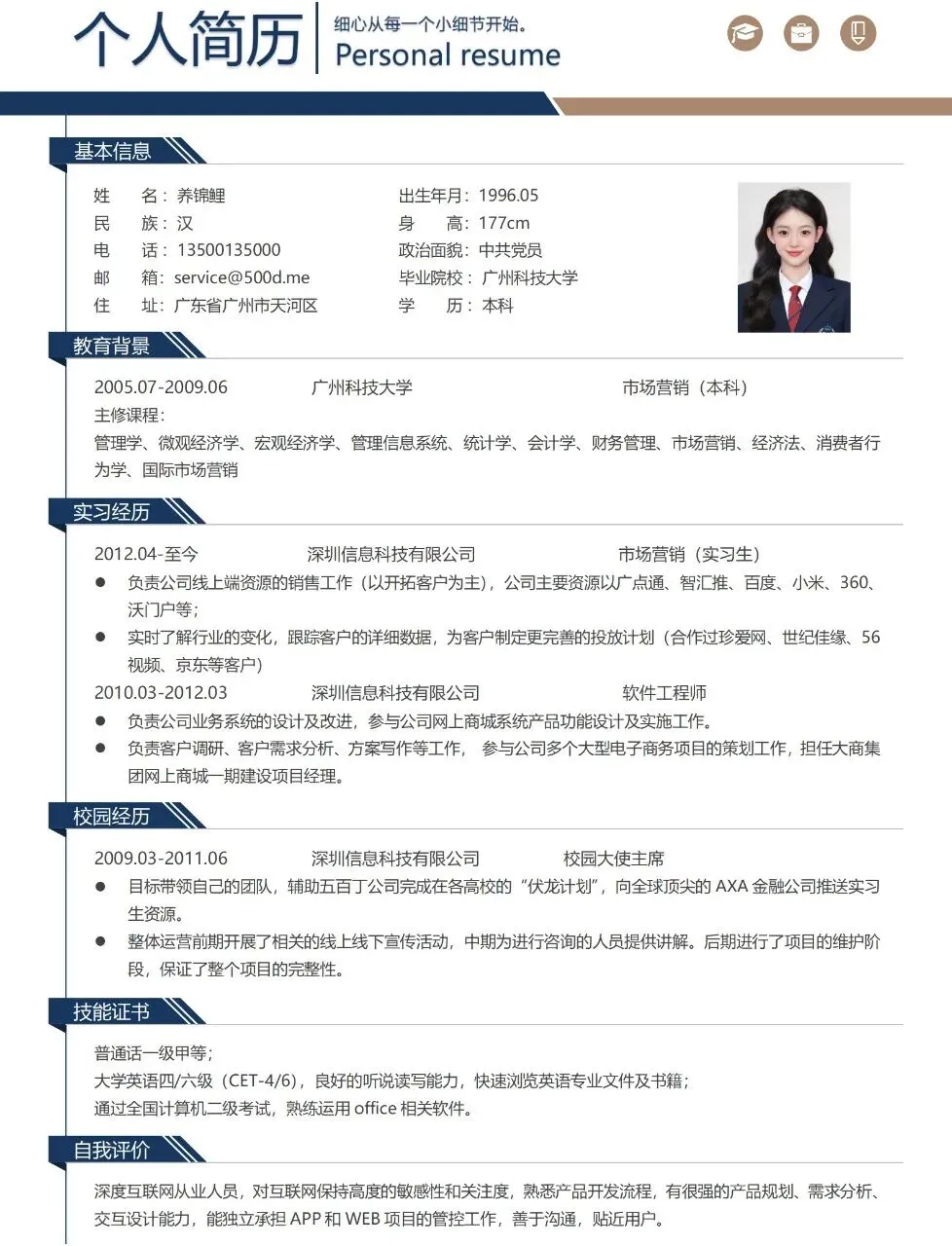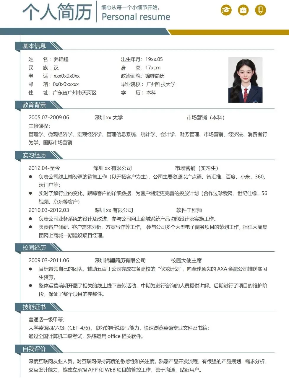 本文分享的是锦鲤附体简历模板