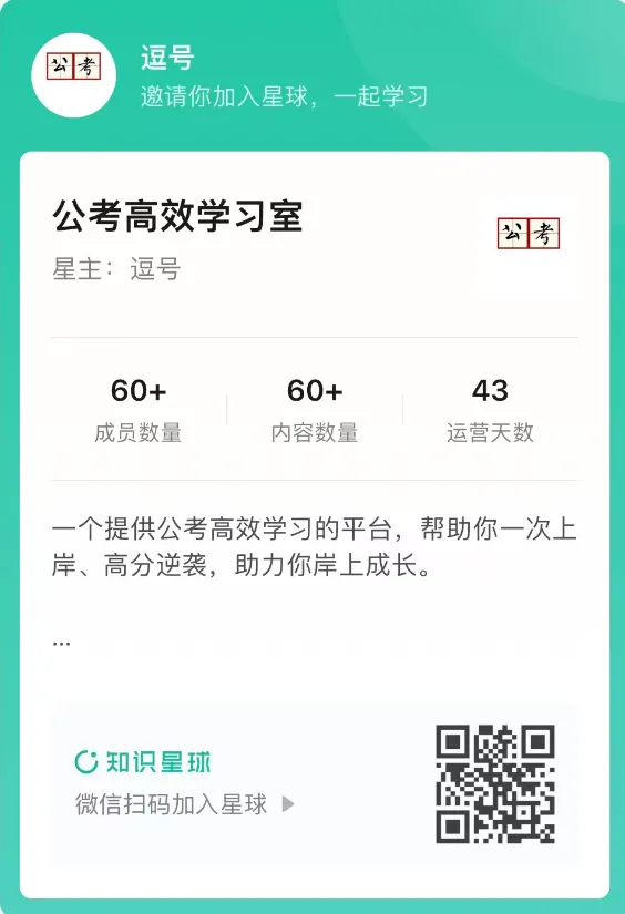 详见知识星球“公考高效学习室”,文章编号#011603……