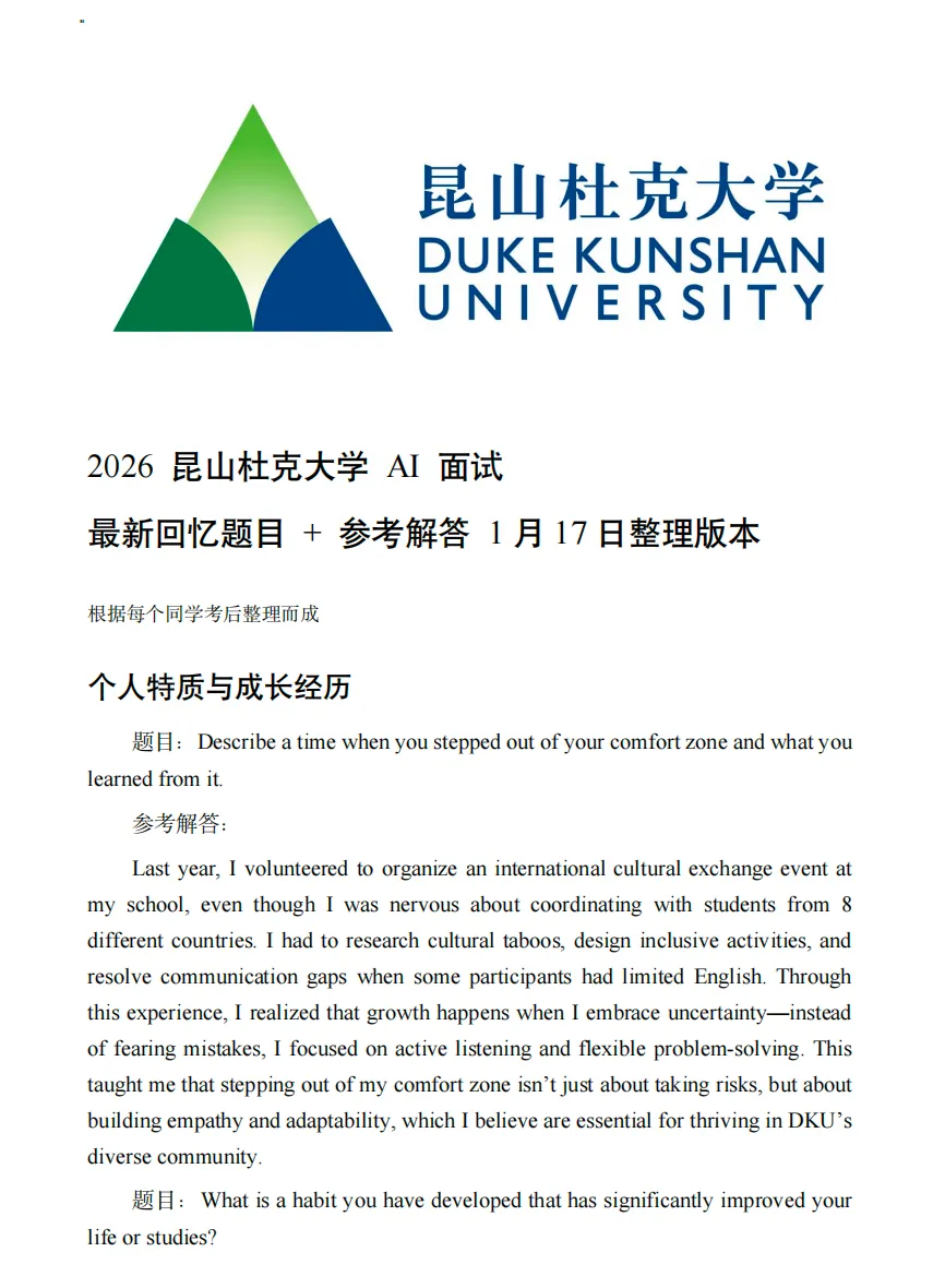 1月15日收集到的昆山杜克大学ai面试问答真题
