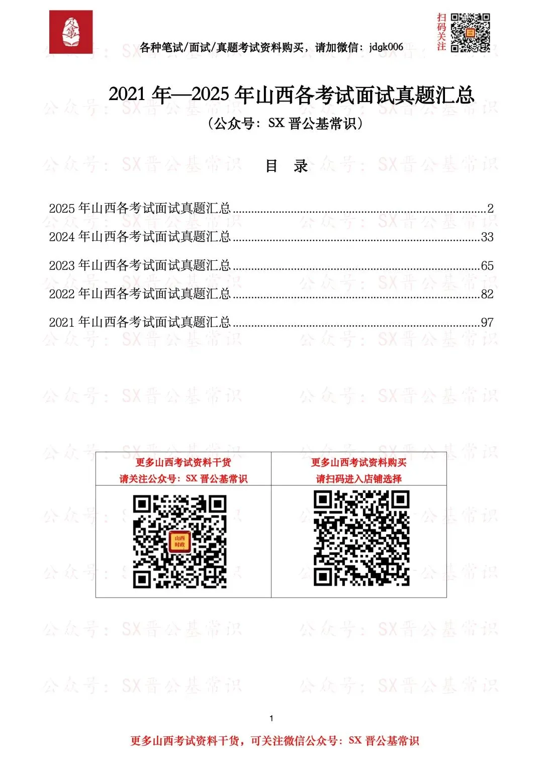 山西各地各考试面试真题汇总内含:2021年—2025年山西各地各考试面试真题汇总,包含山西公务员、山西事业单位、山西教师招聘、山西招警、山西三支一扶等各种考试的面试真题。总计110页。试题来源于网友回忆及网络整理,仅供学习参考。