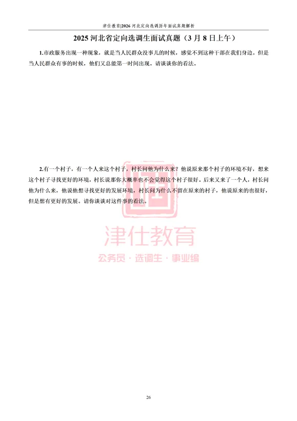 标题:可自由发挥,但需包含“津仕河北定向选调面试真题范答逐字稿”