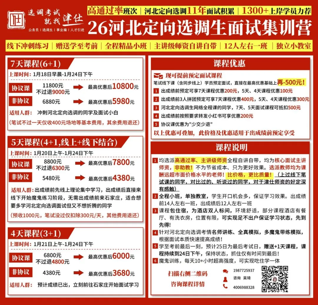 文案:可自由发挥,但需包含“津仕河北定向选调面试真题范答逐字稿”