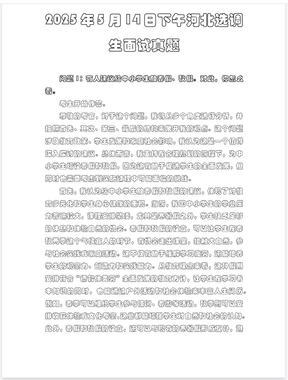 26河北选调面试真题加哒案解析面试素材已出