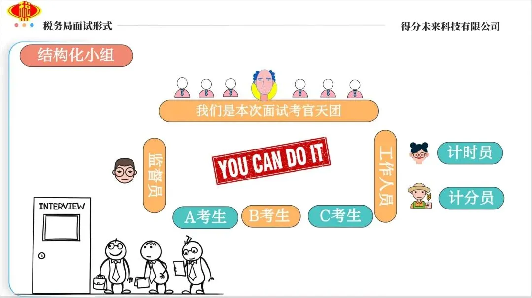 税务系统在2017年及以前, 主要采用结构化面试,但是从2018年开始, 税务系统作为公务员面试改革的试点系统, 首次采用了结构化小组的面试形式。面试形式:结构化小组