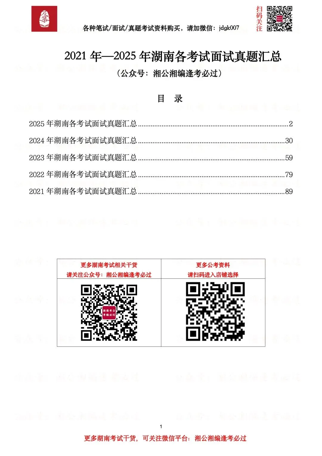 湖南各考试面试真题汇总:2021年—2025年湖南各考试面试真题汇总,包含湖南公务员、湖南事业单位、湖南教师、湖南招警、湖南三支一扶等湖南各地各种考试的面试真题。总计94页。