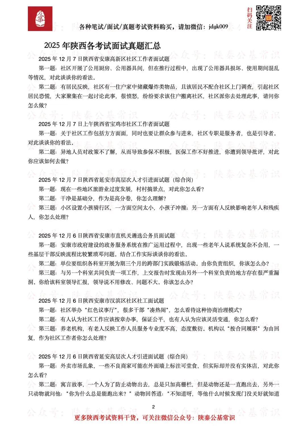 陕西各考试面试真题汇总内含:2021年—2025年陕西各考试面试真题汇总,包含陕西公务员、陕西事业单位、陕西教师招聘、陕西招警、陕西三支一扶等各种考试的面试真题。总计95页。