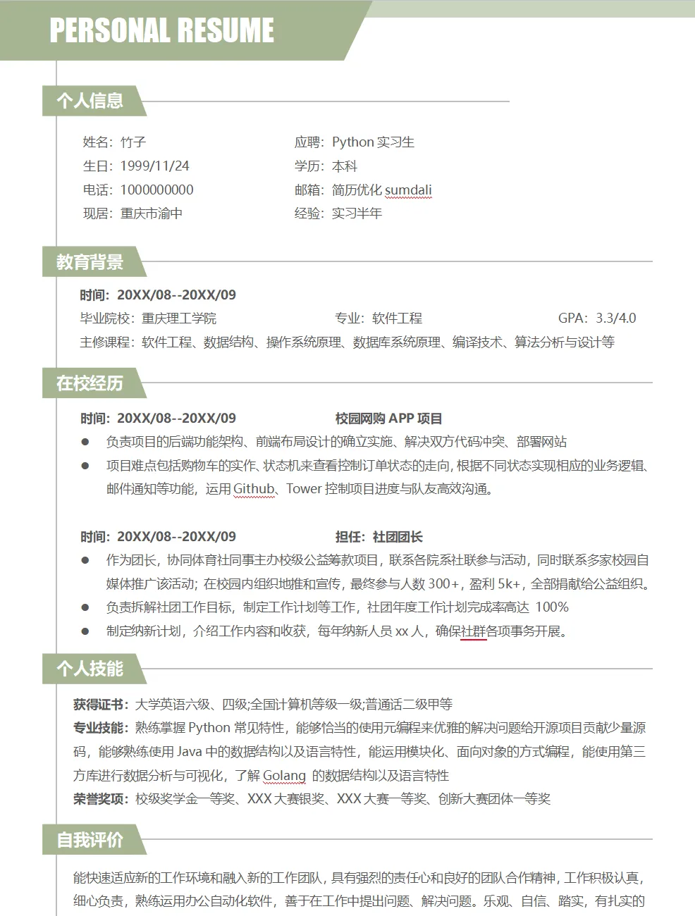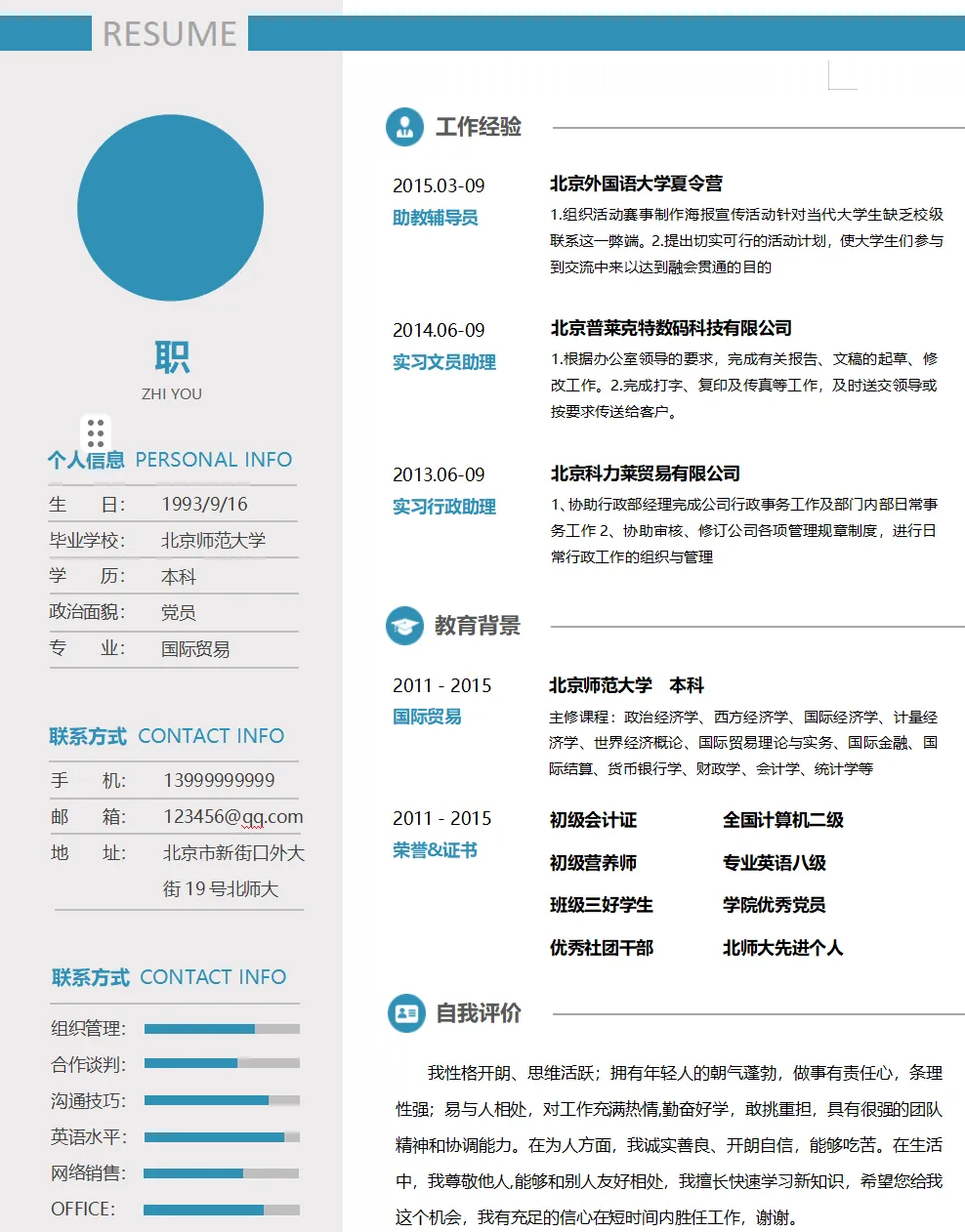 当前位置:首页>简历模板>【大学生求职简历模板 】毕业生个人求职简历免费保存/免费下载/可以编辑修改