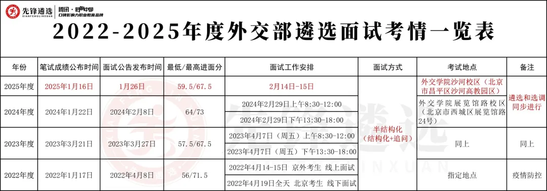 所谓半结构化面试,就是在结构化面试的基础上,通过设计固定追问或随机提问的方式,获取学员更为丰富、完整的信息。目前,主要是外交部在采用。仍然以 2025 年为例,进行如下分析: