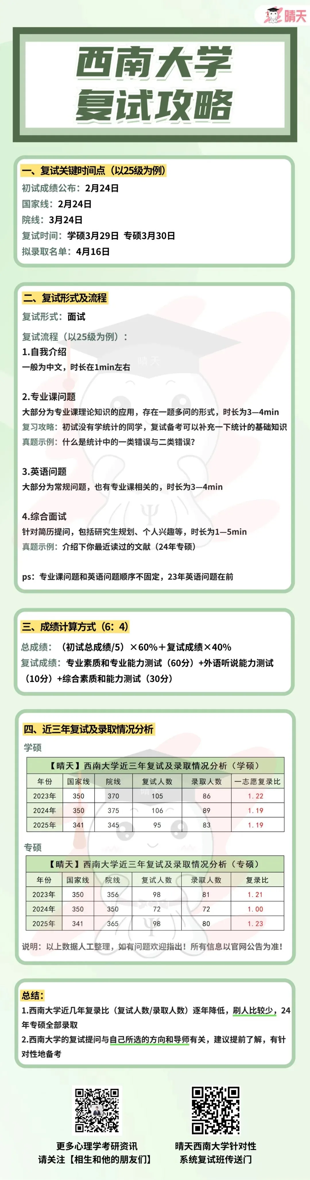 📍复试关键时间点(以25级为例)📍复试形式及流程📍成绩计算方式📍近三年复试及录取情况分析